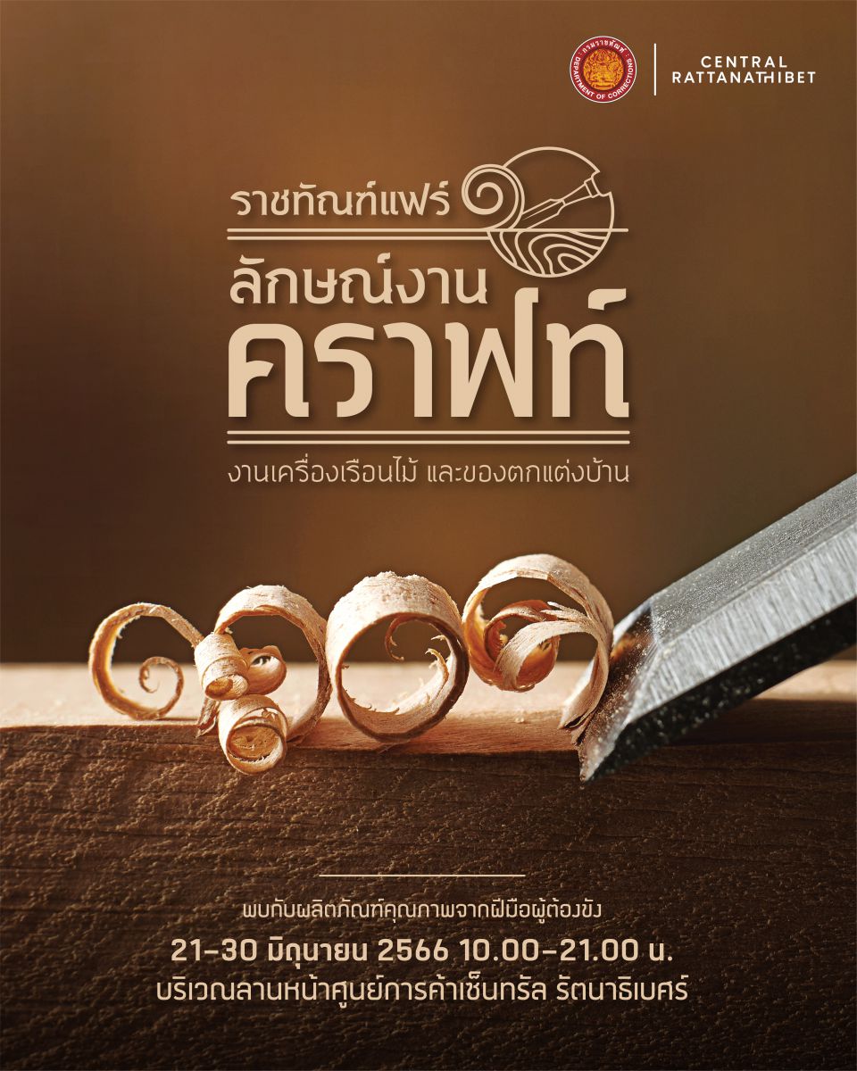 กรุงเทพฯ-กรมราชทัณฑ์ชวนร่วมสนับสนุน และอุดหนุนผลิตภัณฑ์คุณภาพจากฝีมือผู้ต้องขังในงาน“ราชทัณฑ์แฟร์ ลักษณ์งาน คราฟท์ เครื่องเรือนไม้และของตกแต่งบ้าน” ในระหว่างวันที่ 21 - 30 มิถุนายน 2566 รวม ๑๐ วัน ณ ลานหน้าศูนย์การค้าเซ็นทรัลรัตนาธิเบศร์ ถนนรัตนาธิเบศร์ จังหวัดนนทบุรี