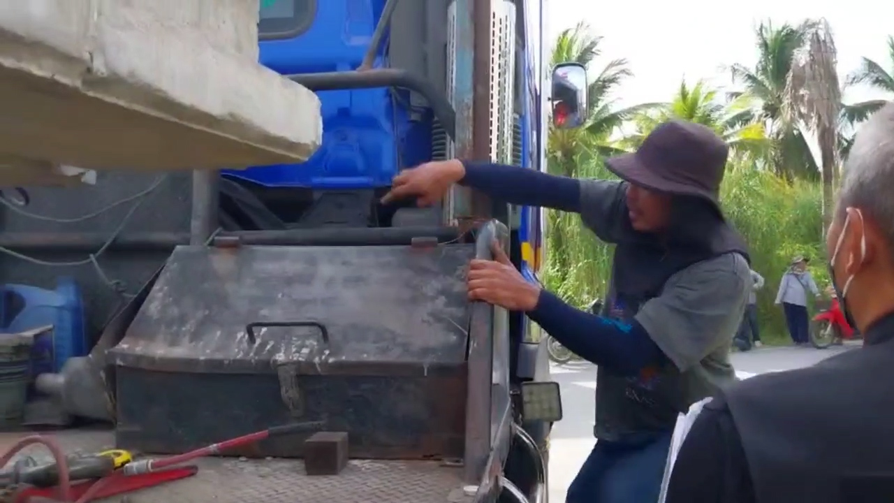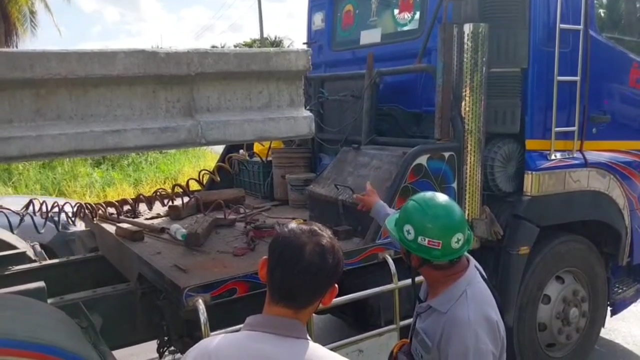 นครปฐม-อุทาหรณ์ สลดคนงานพม่า 3 คนนั่งบนเสาเข็มที่รถพ่วงกำลังบรรทุกไปส่งทำเขื่อน ถึงหัวโค้งคนขับเหยียบเบรกทำให้เสาเข็มไหลทับร่าง โดยมีท่อลมเบรกเสียบขาดับสยองคาที่ ตำรวจเร่งตรวจสอบหลักฐานก่อนเตรียมแจ้งข้อหาต่อไป