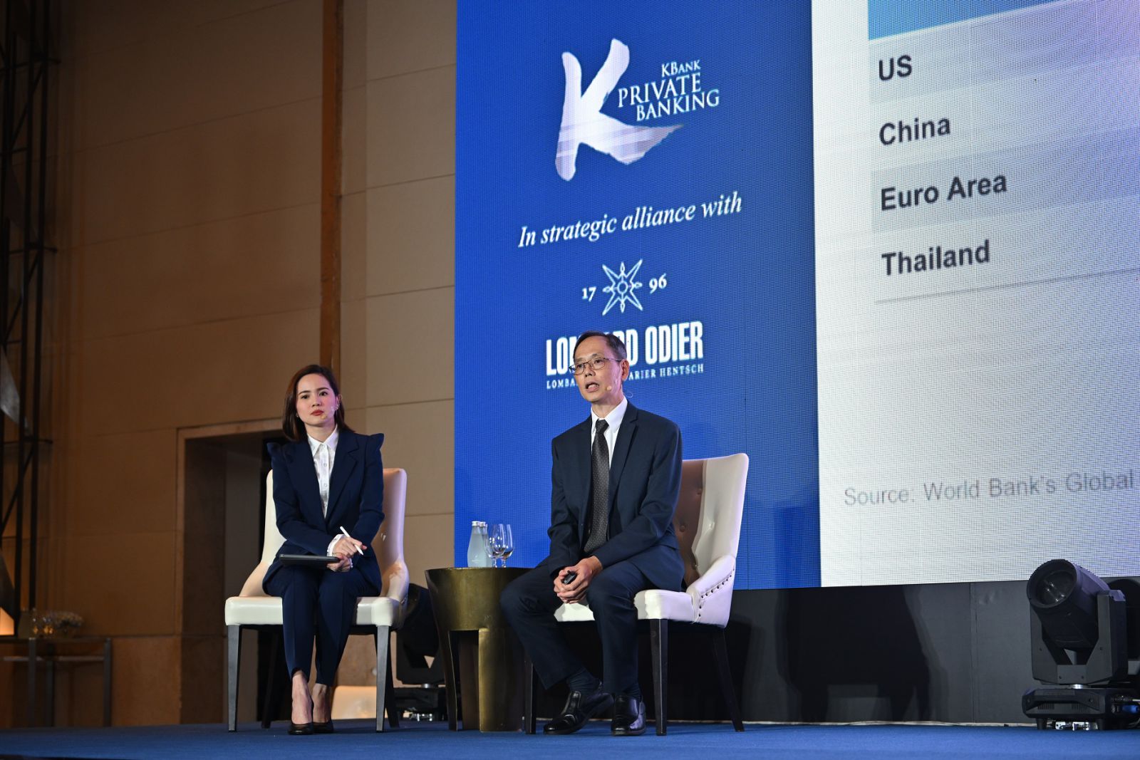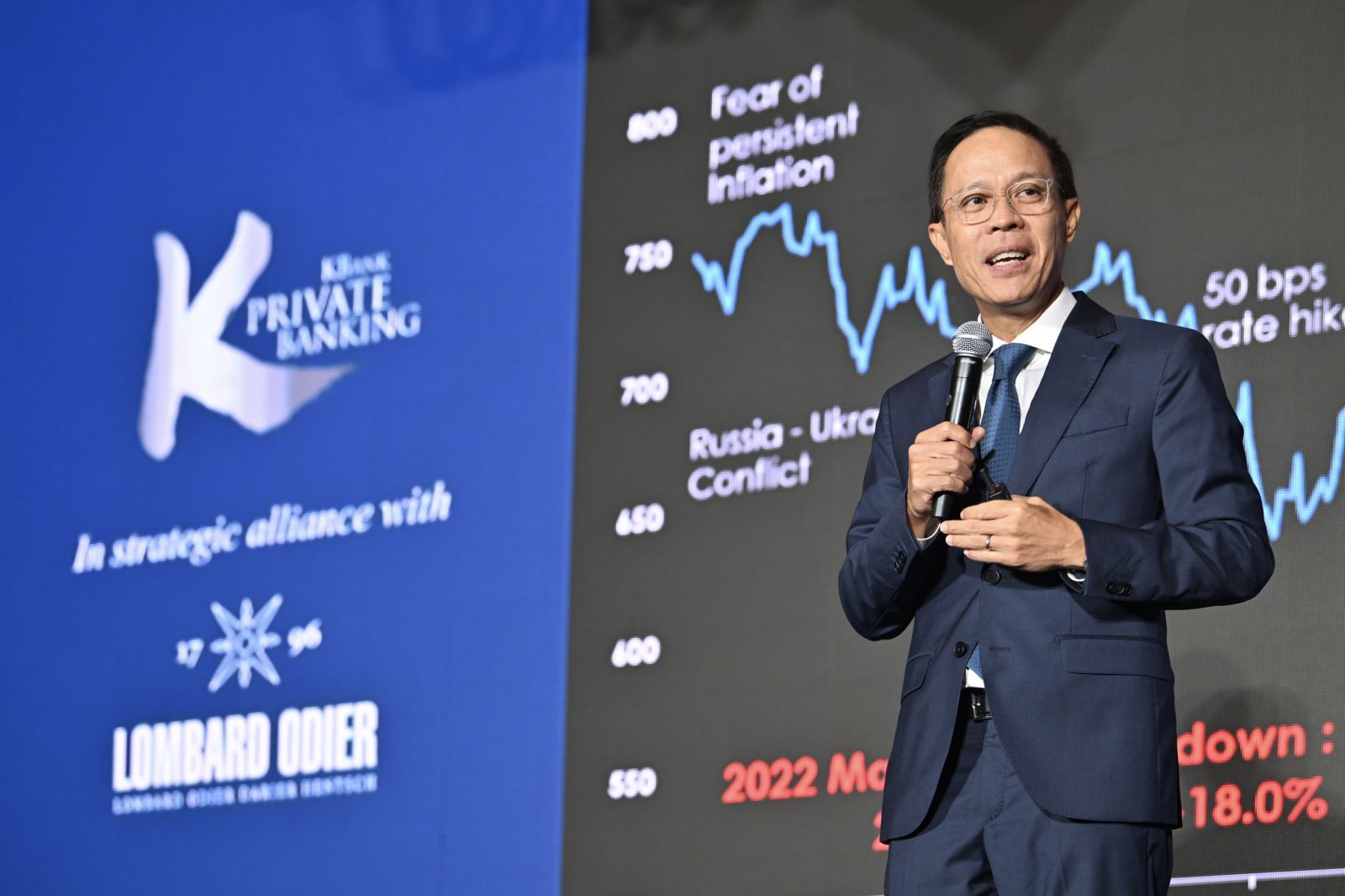 กรุงเทพฯ-KBank Private Banking ร่วมกับ Lombard Odier พันธมิตรทางธุรกิจไพรเวทแบงก์ระดับโลกจากสวิตเซอร์แลนด์ จัดงานสัมมนาในหัวข้อ Beyond the Numbers: Decoding the Economic Outlook ประเมินเศรษฐกิจโลกยังคงต้องเผชิญกับความท้าทายระยะสั้น ทั้งจากการเติบโตทางเศรษฐกิจและอัตราเงินเฟ้อที่ชะลอตัวลง แต่ยังมีความหวังว่าเศรษฐกิจจะเติบโตได้ดีในระยะยาว แนะกลยุทธ์ปรับพอร์ตรับมือความท้าทายและรอคว้าโอกาสที่กำลังจะมาถึง ชูกองทุนผสมแบบ Risk-Based และสินทรัพย์ทางเลือกโดยเฉพาะสินทรัพย์นอกตลาด ทั้งหุ้นนอกตลาด ตราสารหนี้นอกตลาด และอสังหาริมทรัพย์นอกตลาด ด้านศูนย์วิจัยกสิกรไทยมองเศรษฐกิจไทยกำลังเผชิญกับโจทย์ในระยะกลางถึงยาวแต่สถานการณ์ด้านการเมืองในประเทศ อาจส่งผลให้รัฐบาลต้องให้น้ำหนักไปที่โจทย์เฉพาะหน้ามากกว่า คงตัวเลข GDP ไทยปีนี้อยู่ที่ 3.7%