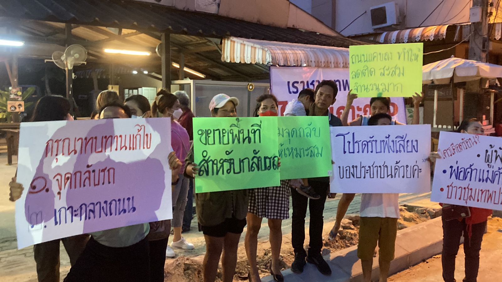 ชาวบ้านพัทยาประท้วงการก่อสร้างเกาะกลางถนนเทพประสิทธิ์