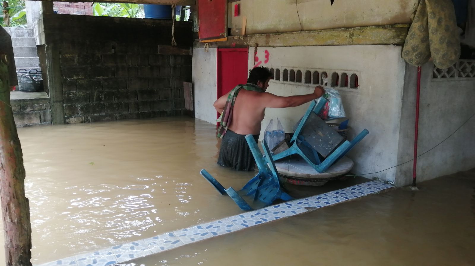 พังงา-ตำรวจตระเวนชายแดน 425 จิตอาสาพร้อมด้วยฝ่ายปกครองอำเภอตะกั่วป่านำเรือท้องแบนมอบถุงยังชีพช่วยเหลือผู้ประสบภัยน้ำท่วมในอำเภอตะกั่วป่า พบว่าชาวบ้านยังต้องอาศัยบนชั้นสองของบ้าน