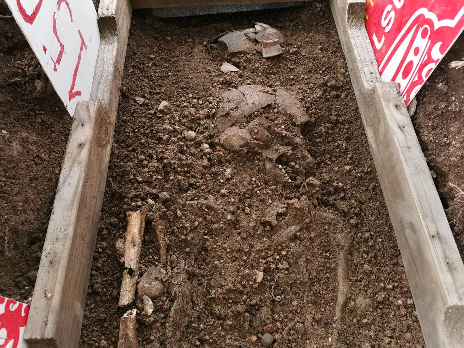 จากนั้นนางธันย์ ฯได้ไปปรึกษา ผู้ชำนาญการด้านพิธีการเกี่ยวกับการเชิญวิญญานมาทำพิธี หลังจากได้ทำพิธีแล้ว ก็ดำเนินรองรื้อห้องน้ำออก และขุดนึกลงไปประ 2 เมตรเศษ ก็พบโครงกระดูกจริงๆ แต่สภาพเป็นชิ้นละเอียด และหม้อโบราณเนื่องจากเจ้าหน้าที่ขุดไม่เป็นจึงเอาขึ้นมาเป็นชิ้นๆ นับได้ประมาน 3 ศพ