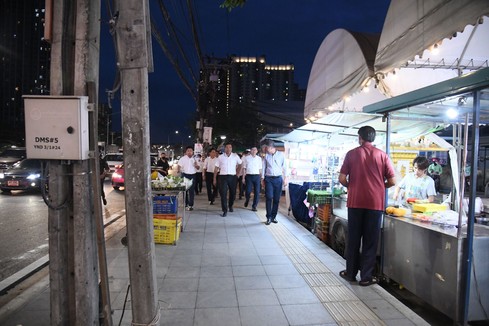 จากนั้น ผู้ว่าฯ กทม. ได้นั่งรถไปยังบริเวณหน้าเดอะมอลล์ท่าพระ และเดินเท้าจนถึงแยกมไหสวรรค์ เพื่อติดตามการจราจรว่าคล่องตัวขึ้นหรือไม่ รวมถึงติดตามปัญหาอื่น ๆ ในพื้นที่ โดยกำชับในพื้นที่ที่มีการก่อสร้างให้ดูเรื่องการระบายน้ำให้ดี ในส่วนของทางเท้าที่ยังมืดจะมีการติดไฟแสงสว่างชั่วคราว เพื่อบรรเทาความเดือดร้อนให้แก่ประชาชน