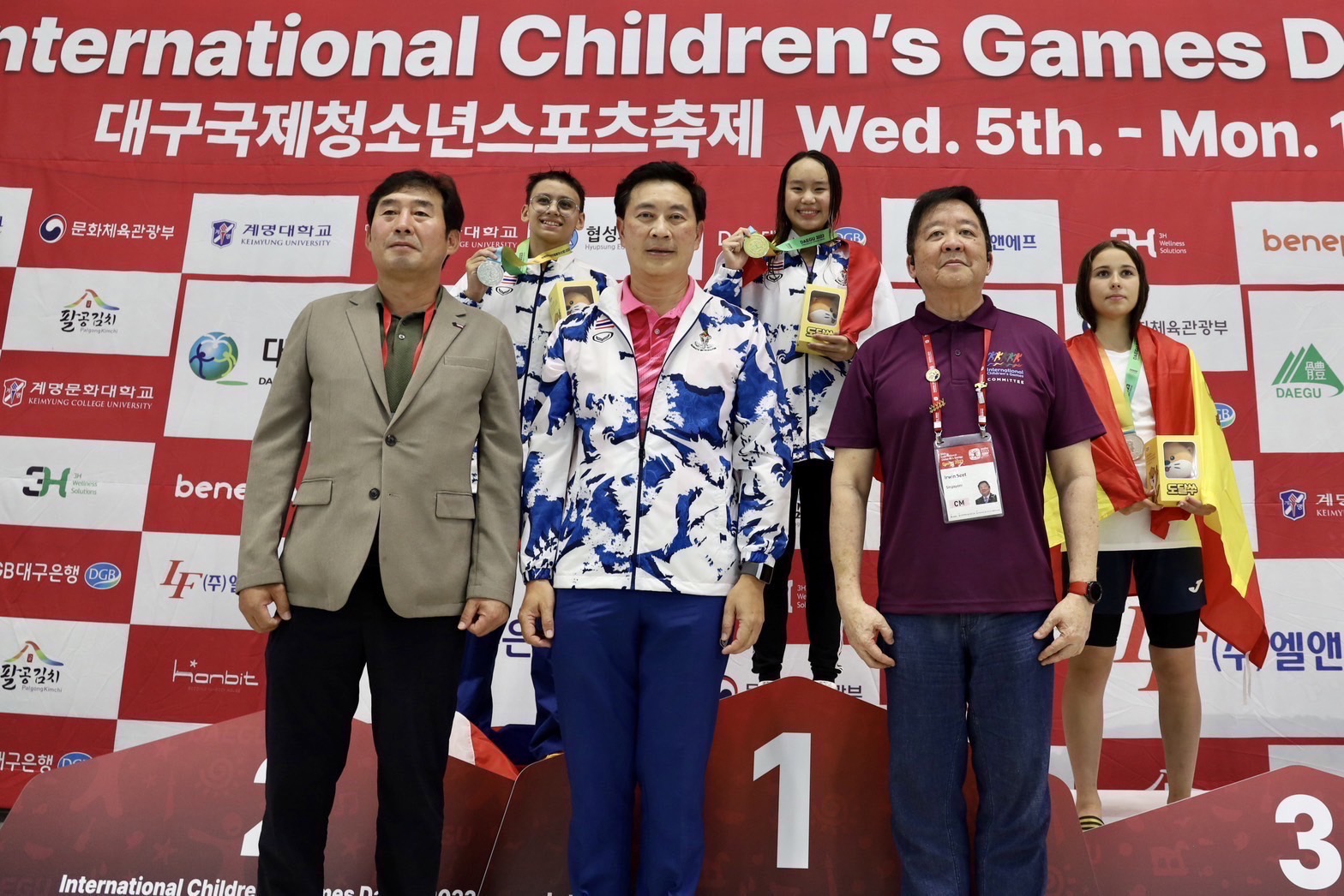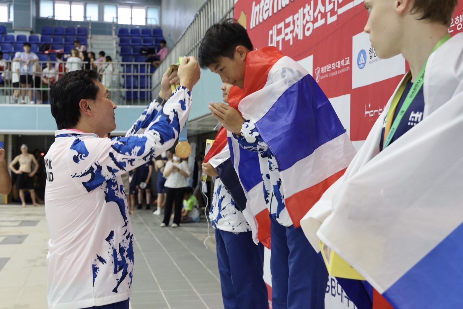 ในการนี้ นายภิมุข สิมะโรจน์ เลขานุการผู้ว่าราชการกรุงเทพมหานคร ในฐานะผู้แทนเมือง ได้รับเกียรติจากคณะกรรมการการแข่งขันกีฬายุวชนโลก (ICG Executive Committee) และเจ้าภาพจัดการแข่งขัน เป็นประธานในพิธีมอบเหรียญรางวัลการแข่งขันกีฬาว่ายน้ำ ณ Duryu Swimming Pool พร้อมนี้นายขจิต ชัชวานิชย์ ปลัดกรุงเทพมหานคร ในฐานะผู้จัดการทีม และนายสมบูรณ์ หอมนาน ผู้อำนวยการสำนักวัฒนธรรม กีฬา และการท่องเที่ยว ในฐานะผู้ช่วยผู้จัดการทีม ร่วมเชียร์นักกีฬาด้วย