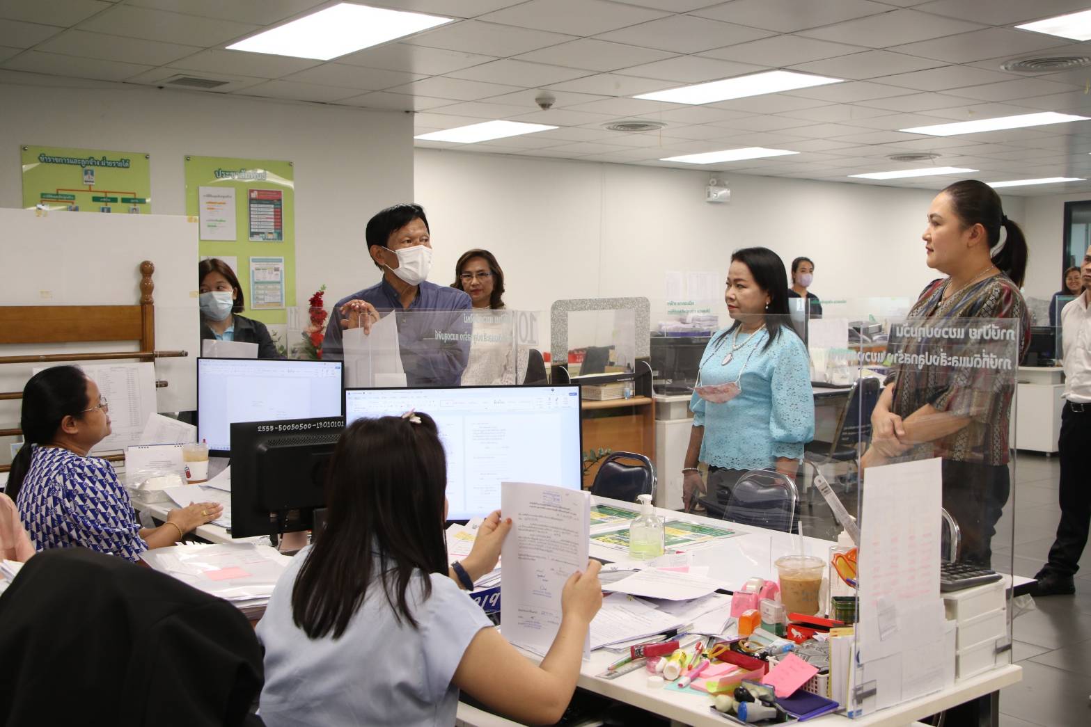 ติดตามการให้บริการประชาชนของฝ่ายทะเบียน ภายในศูนย์บริหารราชการ ฉับไวใสสะอาด (Bangkok Fast & Clear : BFC) เขตปทุมวัน ระยะเวลาในการให้บริการประชาชนที่มาติดต่องานทะเบียนบัตรประจำตัวประชาชน ตั้งแต่กดรับบัตรคิวจนเสร็จสิ้นขั้นตอนการทำงาน ซึ่งควรใช้ระยะเวลาไม่เกิน 15 นาที ไม่รวมเวลารอคอย โดยขึ้นอยู่กับจำนวนประชาชนที่มารับบริการในแต่ละวัน ทั้งนี้ รองผู้ว่าราชการกรุงเทพมหานคร ได้สอบถามถึงปัญหาและอุปสรรคที่ส่งผลให้งานบริการเกิดความล่าช้า ประสิทธิภาพของอุปกรณ์คอมพิวเตอร์ที่ใช้งาน พร้อมทั้งให้คำแนะนำและแนวทางในการปรับลดขั้นตอนการทำงาน เพื่อให้การปฏิบัติงานเป็นไปอย่างรวดเร็ว อำนวยความสะดวกแก่ประชาชนที่มารับการบริการ