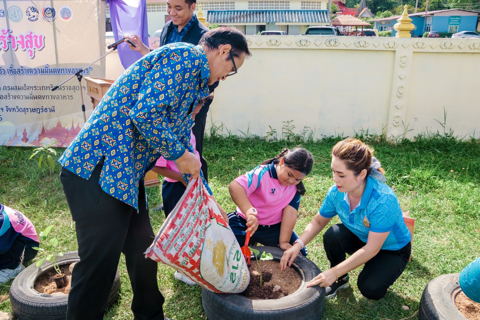 สุราษฎร์ธานี-สพจ.สุราษฎร์ ผนึกกำลัง สพอ.เมืองฯ ร่วมบูรณาการ 7 ภาคีเครือข่าย จัดกิจกรรม“วัด ประชา รัฐ” สู่ปฏิบัติการปลูกผักสวนครัว เพื่อสร้างความมั่นคงทาอาหาร ณ วัดบางขยาราม ตำบลบางชนะ อำเภอเมืองฯ จังหวัดสุราษฎร์ธานี