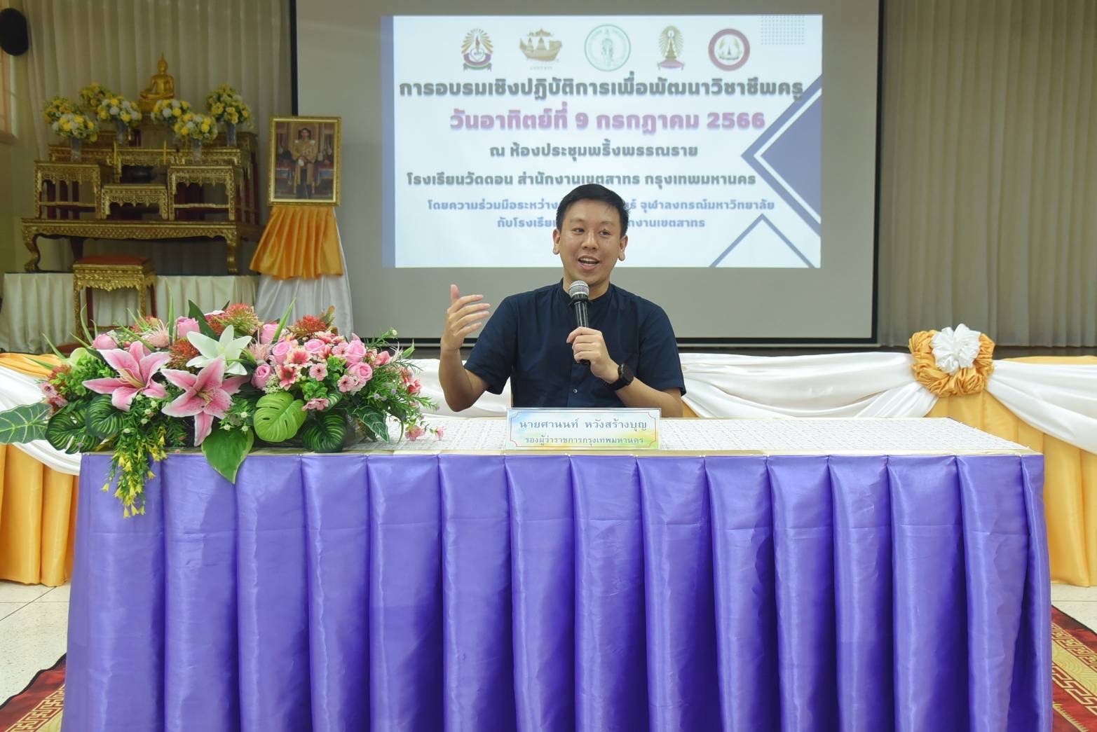 กรุงเทพฯ-(9 ก.ค. 66) นายศานนท์ หวังสร้างบุญ รองผู้ว่าราชการกรุงเทพมหานคร เป็นประธานในพิธีเปิดการอบรมเชิงปฏิบัติการเพื่อพัฒนาวิชาชีพครู ณ ห้องประชุม โรงเรียนวัดดอน เขตสาทร