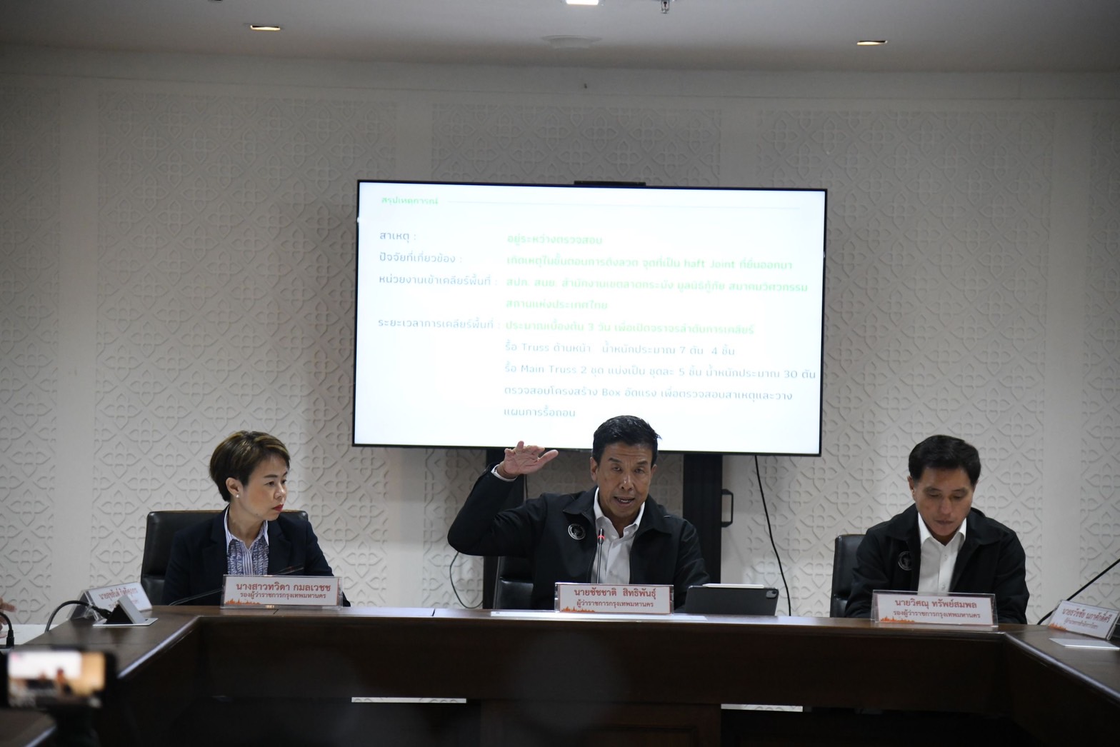สถานการณ์เมื่อคืนเวลาประมาณ 00.00 น. ได้สั่งการให้เตรียมรื้อถอนก็พาบริษัทผู้รับเหมาเข้ามา ซึ่งมีอยู่ 3 ส่วนที่เกี่ยวข้องกับผู้รับเหมาหลัก ผู้รับเหมาทำ Truss หรือเรียกว่า Launcher และผู้รับเหมาที่ดึงลวด รวมทั้งหน่วยบรรเทาสาธารณภัยเข้าไปปูพรมตรวจอีกครั้งหนึ่ง ให้มั่นใจก่อนว่าไม่มีใครติดอยู่ข้างล่าง การดำเนินการใช้วิธียกเครนโดยเอาเครน 200 ตัน 3 ตัว มายกชิ้นส่วน Truss ด้านบนก่อน ชิ้นส่วนหนักประมาณ 7 ตัน 4 ชิ้น เมื่อเช้าเริ่มยกเวลาประมาณ 07.00 น. และจะทยอยยกไปคาดว่าวันนี้น่าจะแล้วเสร็จ ซึ่งในการรื้อถอนต้องระวังว่าสภาพที่ไม่เสถียร หากรื้อถอนแล้วอาจจะมีน้ำหนักที่เอาออก แล้วทำให้เกิดการเสียสมดุลอาจมีการหล่นลงมาอีก ต้องมีการค้ำยันให้ดีก่อนต้องทำในลักษณะค่อยเป็นค่อยไป