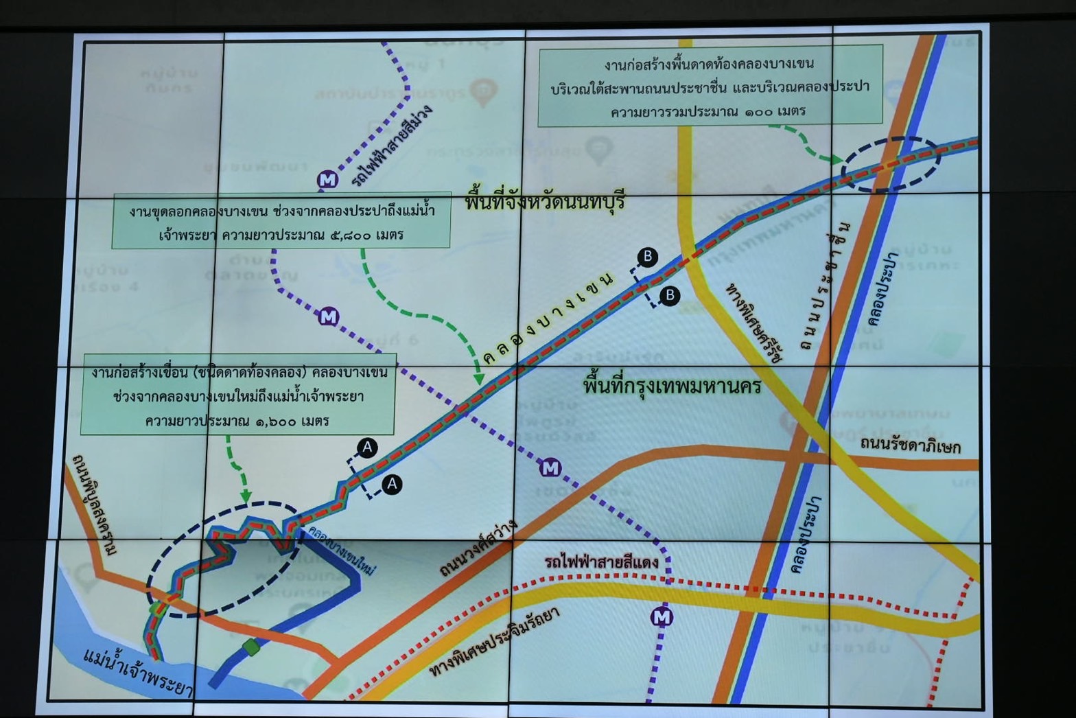 ทั้งนี้กรุงเทพมหานครได้ตรวจสอบสภาพคลองบางเขน ซึ่งเป็น 1 ใน 9 คลองสายหลักดังกล่าว พบว่าปัจจุบันมีสภาพตื้นเขินมากและมีสิ่งกีดขวางการระบายน้ำหลายจุด ทำให้เป็นปัญหาอุปสรรคในการระบายน้ำ กรุงเทพมหานครได้วางแผนพัฒนาคลองบางเขน เพื่อแก้ไขปัญหาการรุกล้ำลำน้ำสาธารณะ และเพื่อเพิ่มประสิทธิภาพการระบายน้ำ โดยปัจจุบันอยู่ระหว่างการสำรวจออกแบบและจัดทำแผนแม่บทการพัฒนาคลองบางเขน แต่เนื่องจากคลองบางเขนช่วงจากคลองประปาถึงแม่น้ำเจ้าพระยาเป็นพื้นที่รอยต่อแนวเขตกรุงเทพมหานครและจังหวัดนนทบุรี โดยแบ่งแนวเขตที่กึ่งกลางคลองบางเขน การพัฒนาคลองบางเขนเพื่อเพิ่มประสิทธิภาพการระบายน้ำ จำเป็นต้องพัฒนาคลองบางเขน ในพื้นที่ของจังหวัดนนทบุรี บริเวณพื้นที่รอยต่อกับพื้นที่กรุงเทพมหานครไปในคราวเดียวกัน โดยมีปริมาณงาน เบื้องต้น ดังนี้ 1.ขุดลอกคลองบางเขน ช่วงจากคลองประปาถึงแม่น้ำเจ้าพระยา ความยาวประมาณ 5,800 เมตร 2.ก่อสร้างพื้นดาดท้องคลองบางเขน บริเวณใต้สะพานถนนประชาชื่น และบริเวณคลองประปาความยาวรวมประมาณ 100 เมตร 3.ก่อสร้างเขื่อน (ชนิดดาดท้องคลอง) คลองบางเขน ช่วงจากคลองบางเขนใหม่ถึงแม่น้ำเจ้าพระยา ความยาวประมาณ 1,600 เมตร