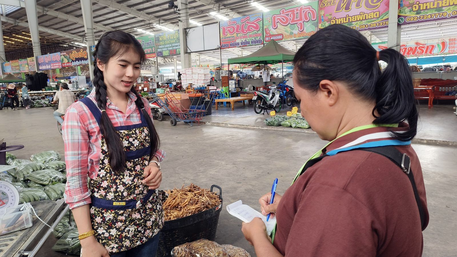 แม้ น้องแบม จะเป็นแม่ค้าสาววัยกระต๊าก เพราะอายุเพียง 22 ปี แต่เธอจะทำอะไรทุกอย่างด้วยตนเอง ตั้งแต่รับซื้อกระชายและขิงจากเกษตรกร และมานั่งแพคกระชายและขิงใส่ถุง อยู่บริเวณท้ายรถกระบะของเธอที่ขับมาเองจาก อ.กำแพงแสน จ.นครปฐม ซึ่งต้องขับไปกลับกว่า 150 กม.ทุกวัน เมื่อมีลูกค้ามาซื้อเธอจะยกถุงกระชายและขิงขายให้กับลูกค้าอย่างขยันขันแข็ง ส่วนแผงของเธอจะขายกระชายทั้งแบบกระชายหัว, กระชายร่วง, กระชายซอย และขิงหัวและขิงซอย จนเธอมีลูกค้าประจำที่สั่งเป็นออเดอร์ไว้ล่วงหน้าอย่างน้อย 300 - 400 กก. และลูกค้าขาจรที่มาซื้อกระชายและขิงของเธอที่แผงอีกเกือบ 600 กก. ซึ่งวันหนึ่งเธอจะขายกระชายและขิงได้เกือบ 1 ตันต่อวัน
