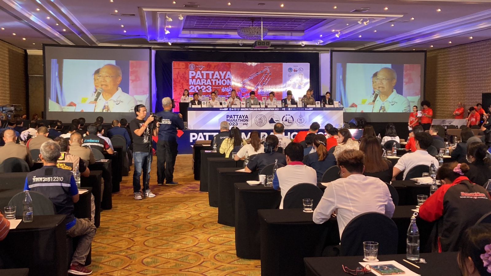 วันที่ 12 ก.ค.66 ที่โรงแรมดุสิตธานี พัทยา นายพิสิษฐ สิริสวัสดินุกูล นายอำเภอบางละมุง นายปรเมศวร์ งามพิเชษฐ์ นายกเมืองพัทยา คณะผู้บริหารเมืองพัทยา นายณัฐ ครุฑสูตร ผู้อำนวยการฝ่ายกิจกรรม การท่องเที่ยวแห่งประเทศไทย พ.ต.ท.อรุษ สภานนท์ สว.จร.สภ.เมืองพัทยา นายสุชาติ แจสุรภาพ สมาคมกีฬากรีฑาแห่งประเทศไทย ในพระบรมราชูปถัมภ์ และผู้เกี่ยวข้อง ร่วมงานแถลงข่าวการแข่งขัน Pattaya Marathon 2023 พัทยามาราธอน ครั้งที่ 30 ประจำปี 2566