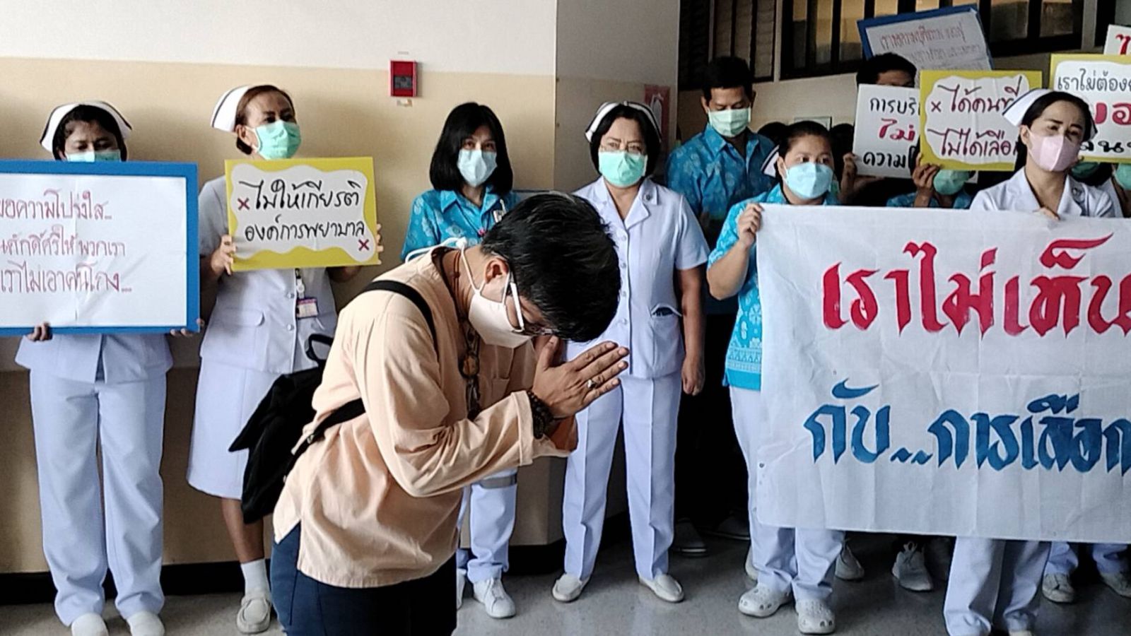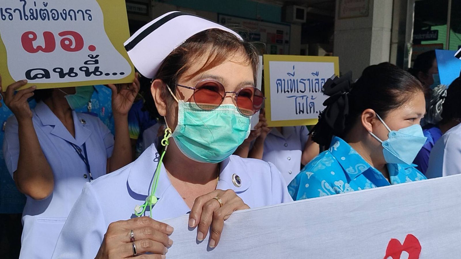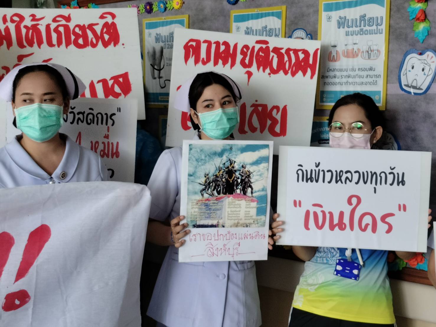 สิงห์บุรี-บุคลากรโรงพยาบาลสิงห์บุรี รวมตัวขับไล่ ผอ.รพ. ทวงถามความยุติธรรม การใช้เงินบริจาคกับเงินสวัสดิการคาดว่าไม่โปร่งใส