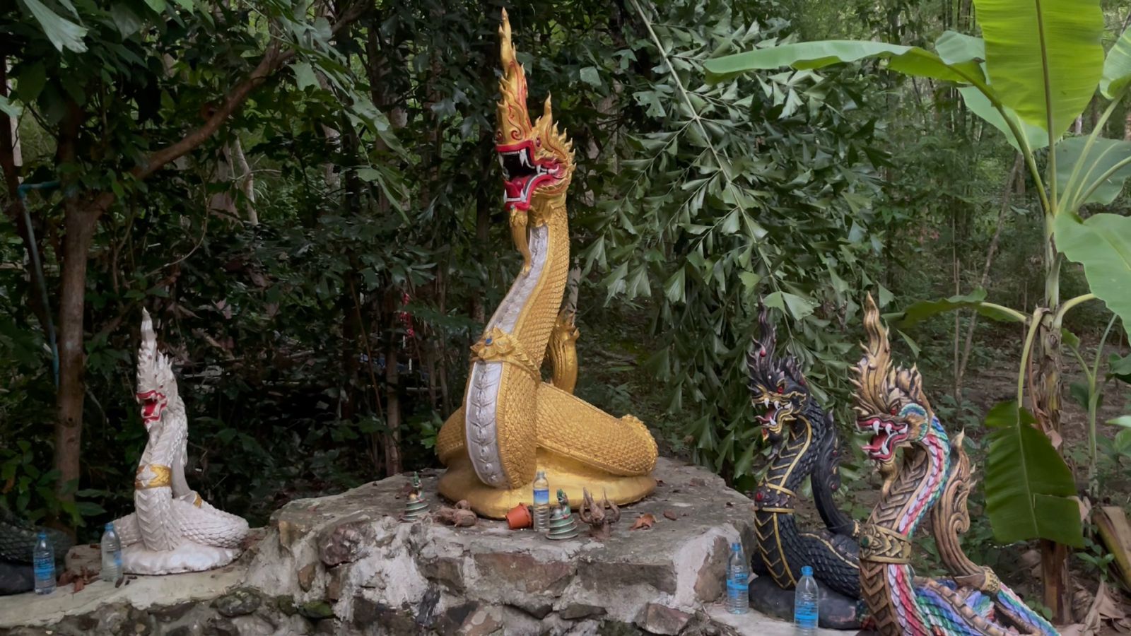 โดยนายธงชัย บุตรดี เป็นโยมอุปัฏฐากของวัดป่าห้วยทรายทองนาคชัยพร ได้เล่าให้ผู้สื่อข่าวฟังถึงความลี้ลับว่า ก่อนหน้านี้มีอยู่วันนึ่งภรรยาตนเองได้ฝันว่า มีคนมาชวนไปทำบุญ มาขอต้นกล้วยมาขอใบตอง แต่ในความฝันเขาไม่บอกว่าวัดไหน มีคนมาชวนและจูงแขนภายในความฝัน และบอกภรรยาว่าให้รีบไปทำบุญใหญ่ของบ้านเรา ภรรยาตนเองจึงสอบถามย้ำว่าวัดชื่ออะไร จึงมีคนบอกว่าอยู่บ้านเชียงคาน และวัดในหมู่บ้านชื่อว่าวัดทรายทอง และก่อนหน้านี้ที่ บ่อน้ำซับ จะมีนายพรานที่ออกล่าสัตว์ เห็นผู้หญิงแต่งตัวสวยงามเดินขึ้นมาจากบ่อน้ำ 4 คนนุ่งสบงเหมือนกับชาววัง ต่อมานายพรานคนดังกล่าวก็มานอนเฝ้าทุกๆคืนในวันพระ เพื่อจะได้เห็น เพราะคลั่งไคล้หลงใหลในความสวยงามของหญิงสาวในฝัน แต่วันแล้ววันเล่านายพรานก็ไม่พบเห็นหญิงสาวเหล่านั้นอีกเลย ซึ่งตอนนั้นยังไม่มีการก่อตั้งวัดป่าห้วยทรายทองนาคชัยพร