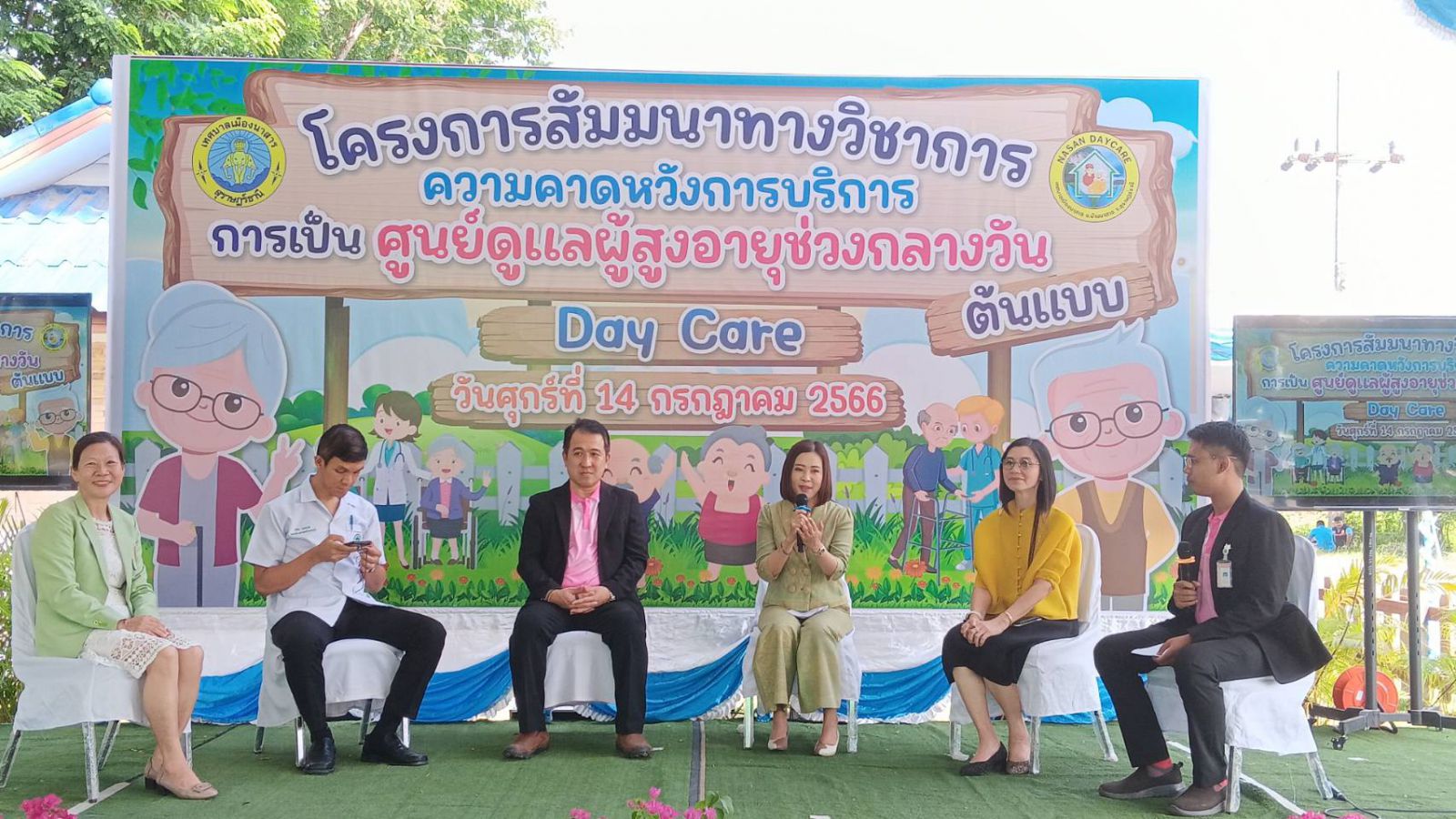 วันที่14 กรกฎาคม 2566 นางสาวชวนชม จันทะวงษ์ รองอธิบดีกรมกิจการผู้สูงอายุ กระทรวงการพัฒนาสังคมและความมั่นคงของมนุษย์ พร้อมด้วย นางอุบล ทองสลับล้วน ผู้อำนวยการสำนักงานส่งเสริมและสนับสนุนวิชาการ 10 และนางสาวชลลดา ชนะศรีรัตนกุล พัฒนาสังคมและความมั่นคงของมนุษย์จังหวัดสุราษฎร์ธานี เข้าร่วมพิธีเปิดโครงการสัมมนาทางวิชาการ "ความคาดหวังการบริการเป็นศูนย์ดูแลผู้สูงอายุช่วงกลางวันต้นแบบ Nasan Daycare." โดยมีนายชโนวิทก์ ตู้บรรเทิง นายกเททศมนตรีเมืองนาสาร ให้การต้อนรัับ และกล่าวรายงานเปิดโครงการ ดังกล่าาว ซึ่งในเวทีเสวนาดังกล่าว ได้รับเกียรติจาก นายปรเมษฐ์ จินา สมาชิกสภาผู้แทนราษฎร เขตุ5 สุราษฎร์ธานี ผศ.ดร.วีณา ลิ้มสกุลอาจารย์คณะพยาบาลศาสตร์ มหาวิทยาลัยราชภัฎสุราษฎร์ธธานี นางพนิต มโนการ ผู้อำนวยการเขตสำนัักงานหลักประกันสุขภาพแห่งชาติเขต11 นายพิชิต สุขสบาย ผู้อำนวยการโรงพยาบาลบ้านนาสาร และนางสาวชลลดา ชนะศรีรัตนกุล พัฒนาสังคมและความมั่นคงของมนุษย์ จังหวัดสุราษฎร์ธานี ร่วมเวทีเสวนาในครั้งนี้
