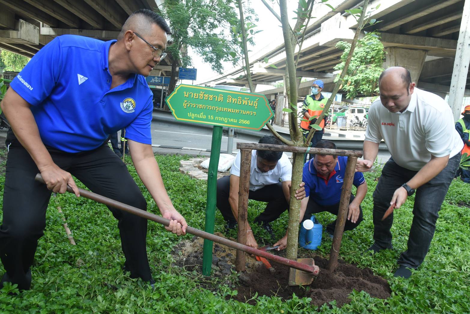 กรุงเทพฯ-(15 ก.ค. 66) นายชัชชาติ สิทธิพันธุ์ ผู้ว่าราชการกรุงเทพมหานคร เป็นประธานในกิจกรรม ผู้ว่าฯ สัญจร เขตวังทองหลาง โดยเช้าวันนี้ ผู้ว่าราชการกรุงเทพมหานคร พร้อมด้วย นายขจิต ชัชวานิชย์ ปลัดกรุงเทพมหานคร นายอนุรักษ์ เลิศวัฒนาไพบูลย์ สมาชิกสภากรุงเทพมหานคร เขตวังทองหลาง คณะผู้บริหารกรุงเทพมหานคร ผู้บริหารและเจ้าหน้าที่เขตวังทองหลาง ผู้แทนจากคลินิกศูนย์แพทย์พัฒนา ผู้แทนจากสหการประมูล Union Auction ตลอดจนผู้เกี่ยวข้อง ร่วมกิจกรรมปลูกต้นไม้ ประกอบด้วย ต้นทองหลาง 1 ต้น ต้นลีลาวดี 2 ต้น และต้นทองอุไร 50 ต้น ภายในสวน 15 นาที "สวนภาวนาแห่งจันทร์" เพื่อสร้างพื้นที่สีเขียวให้แก่เมือง