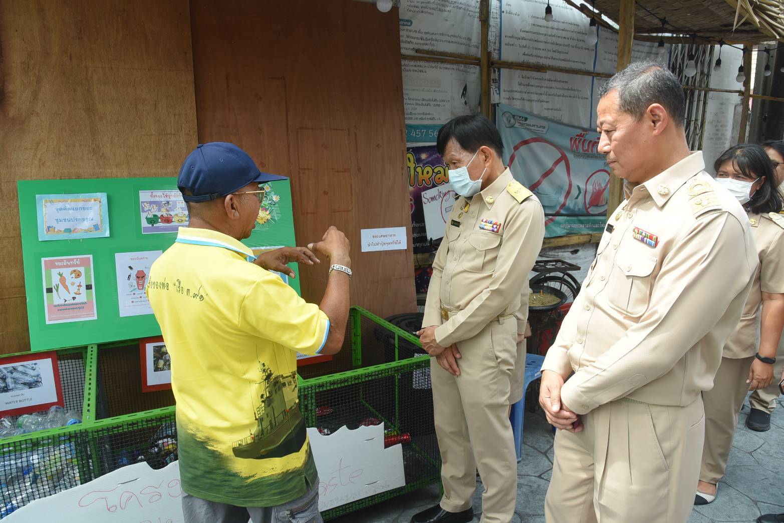 ตรวจเยี่ยมการคัดแยกขยะภายในอาคารสำนักงานเขตบางกอกใหญ่ มีข้าราชการและบุคลากร 547 คน วิธีการคัดแยกขยะ โดยจำแนกตามประเภทของขยะ ดังนี้ 1.ขยะรีไซเคิล นำไปไว้ที่จุดพักขยะรีไซเคิลแต่ละชั้นในอาคารสำนักงานเขตฯ และอาคารฝ่ายรักษาความสะอาดฯ 2.ขยะอินทรีย์ แยกใส่ถังรองรับขยะอินทรีย์ที่ตั้งวางไว้แต่ละชั้นในอาคารสำนักงานเขตฯ และอาคารฝ่ายรักษาความสะอาดฯ บางส่วนนำไปทำปุ๋ยหมักและเลี้ยงสัตว์ 3.ขยะอันตราย นำขยะอันตรายไปทิ้งที่จุดพักขยะอันตรายบริเวณใต้สะพานข้ามคลองบางกอกใหญ่ 4.ขยะทั่วไป นำขยะกำพร้าไปไว้ที่จุดรับขยะกำพร้าบริเวณห้องเวรอัคคีภัย ตามโครงการวน และโครงการมือวิเศษกรุงเทพ แยกเพื่อให้...พี่ไม้กวาด สำหรับปริมาณขยะก่อนคัดแยกและหลังคัดแยก ดังนี้ ขยะทั่วไปก่อนคัดแยก 1,222 กิโลกรัม/เดือน หลังคัดแยก 1,134 กิโลกรัม/เดือน ขยะรีไซเคิลก่อนคัดแยก 431 กิโลกรัม/เดือน หลังคัดแยก 370 กิโลกรัม/เดือน ขยะอินทรีย์ก่อนคัดแยก 326 กิโลกรัม/เดือน หลังคัดแยก 247 กิโลกรัม/เดือน ขยะอันตรายก่อนคัดแยก 29 กิโลกรัม/เดือน หลังคัดแยก 54 กิโลกรัม/เดือน ขยะติดเชื้อก่อนคัดแยก 4.5 กิโลกรัม/เดือน หลังคัดแยก 1.5 กิโลกรัม/เดือน ทั้งนี้ รองผู้ว่าราชการกรุงเทพมหานคร ได้มอบหมายให้เขตฯ พิจารณาหาแนวทางปรับเปลี่ยนเส้นทางการเดินรถเก็บขนมูลฝอย เพื่อเพิ่มประสิทธิภาพในการจัดเก็บขยะ รวมถึงเพิ่มความถี่ในการจัดเก็บขยะเป็น 2 ครั้ง/สัปดาห์ เพื่อไม่ให้เกิดปัญหาขยะตกค้างในพื้นที่
