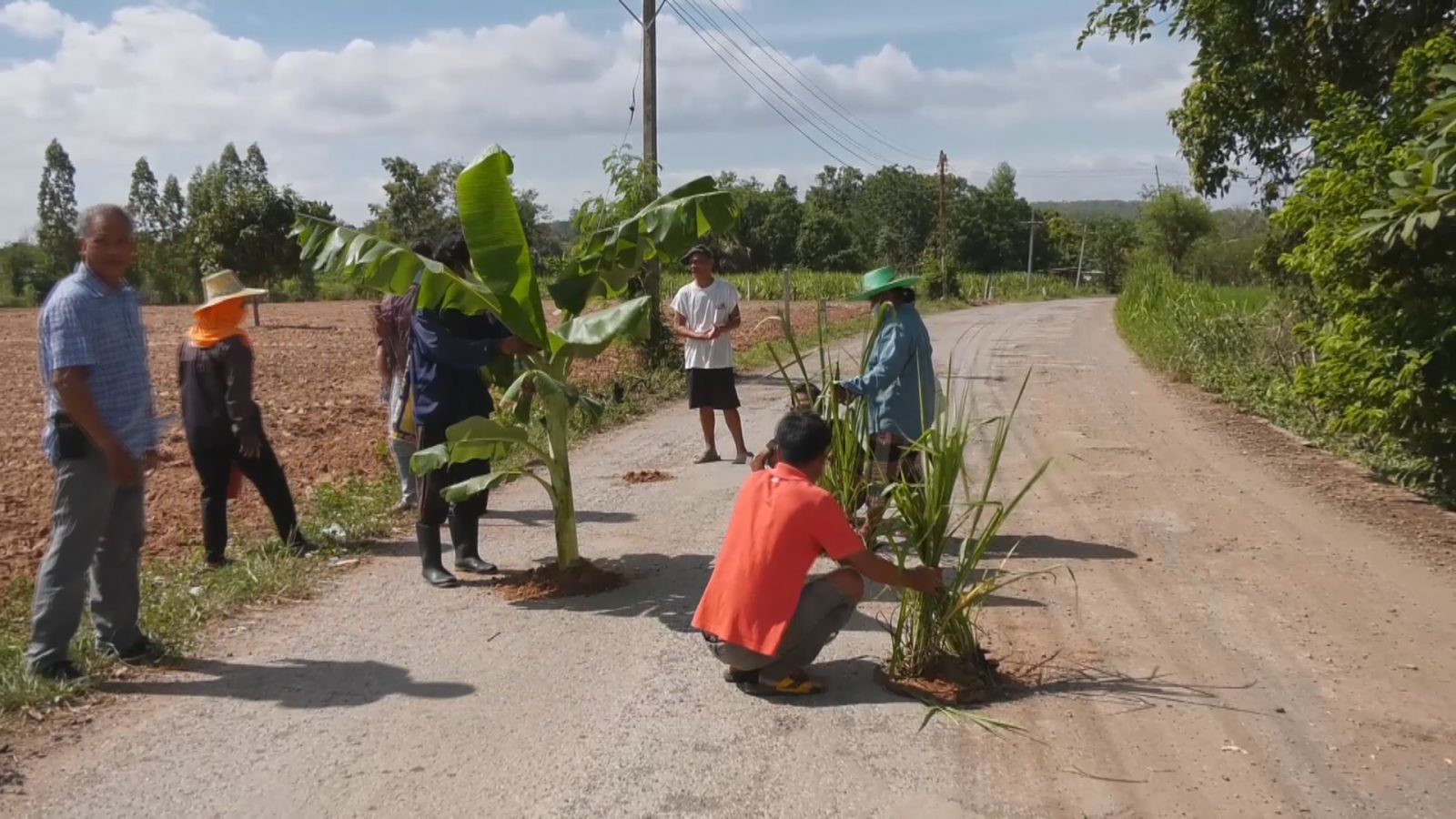ชาวสูงเนินประชดปลูกต้นกล้วยกลางถนน นอภ.เต้นเร่งประสานอบต.ให้จบในปีนี้