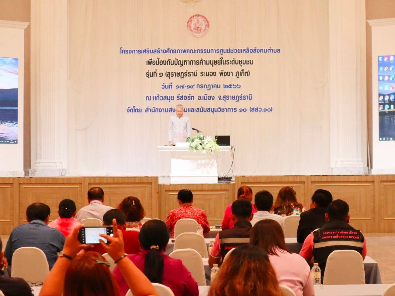 สุราษฏร์ธานี-พม.สุราษฎร์ธานีโครงการเสริมสร้างศักยภาพคณะกรรมการศูนย์ช่วยเหลือสังคมตำบลเพื่อป้องกันปัญหาการค้ามนุษย์ในระดับชุมชน รุ่นที่ 1