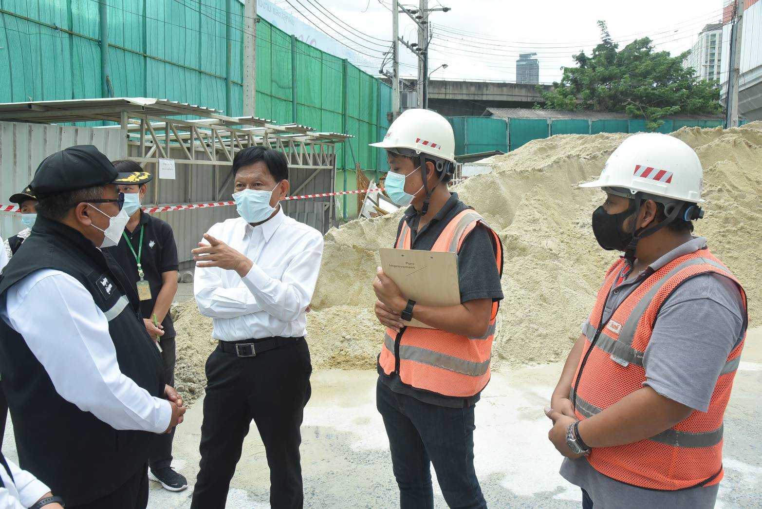 ตรวจมาตรการป้องกันและแก้ไขปัญหาฝุ่น PM2.5 บริษัท นครหลวงคอนกรีต จำกัด ถนนพระราม 9 (แพลนท์ปูนอินทรี) ซึ่งประกอบกิจการประเภทผลิตและจำหน่ายคอนกรีตผสมเสร็จ ทั้งนี้ รองผู้ว่าราชการกรุงเทพมหานคร ได้กำชับผู้ประกอบการตรวจสอบเครื่องพ่นละอองน้ำให้สามารถทำงานได้อย่างเต็มประสิทธิภาพ ตรวจสอบควันดำรถบรรทุกรถโม่ปูนให้อยู่ในเกณฑ์มาตรฐาน พร้อมทั้งมอบหมายให้เขตฯ ติดตามมาตรการควบคุมมลพิษทางอากาศและมาตรการด้านความปลอดภัยอย่างต่อเนื่อง เพื่อเป็นการป้องกันและแก้ไขปัญหาฝุ่น PM2.5 อย่างยั่งยืน นอกจากนี้เขตฯ ได้จัดทำแผนปฏิบัติการตรวจสอบและควบคุมสถานประกอบการที่ก่อให้เกิดปัญหาฝุ่น PM2.5 ในพื้นที่อย่างต่อเนื่อง ได้แก่ ประเภทสถานประกอบการ/โรงงาน ประเภทแพลนท์ปูน/สถานที่ก่อสร้าง/ควันดำในสถานที่ต้นทาง พร้อมทั้งรณรงค์ประชาสัมพันธ์ให้ความรู้เกี่ยวกับฝุ่น PM2.5 ควบคุมไม่ให้ปล่อยมลพิษในอากาศเกินค่ามาตรฐานที่กฎหมายกำหนด
