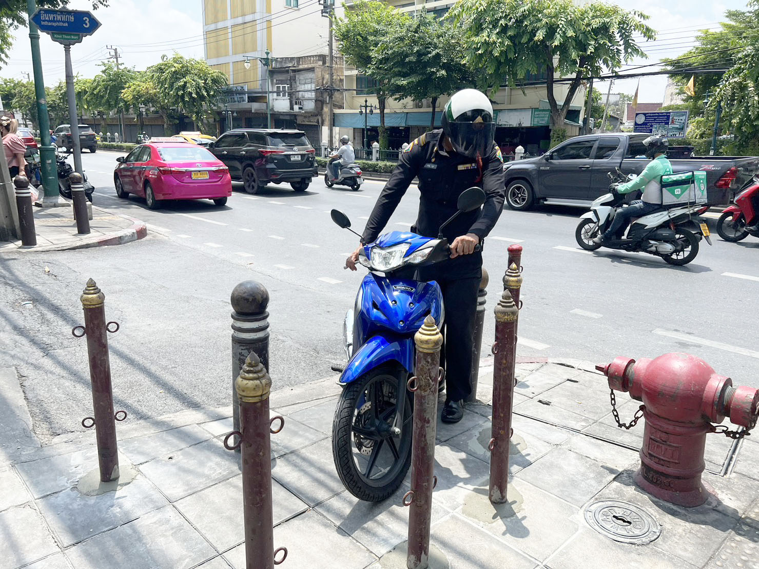 เขตธนบุรีปักเสาเหล็กกั้นรถจักรยานยนต์ ป้องกันผู้ขับขี่บนทางเท้าชี้ปชช.พอใจ