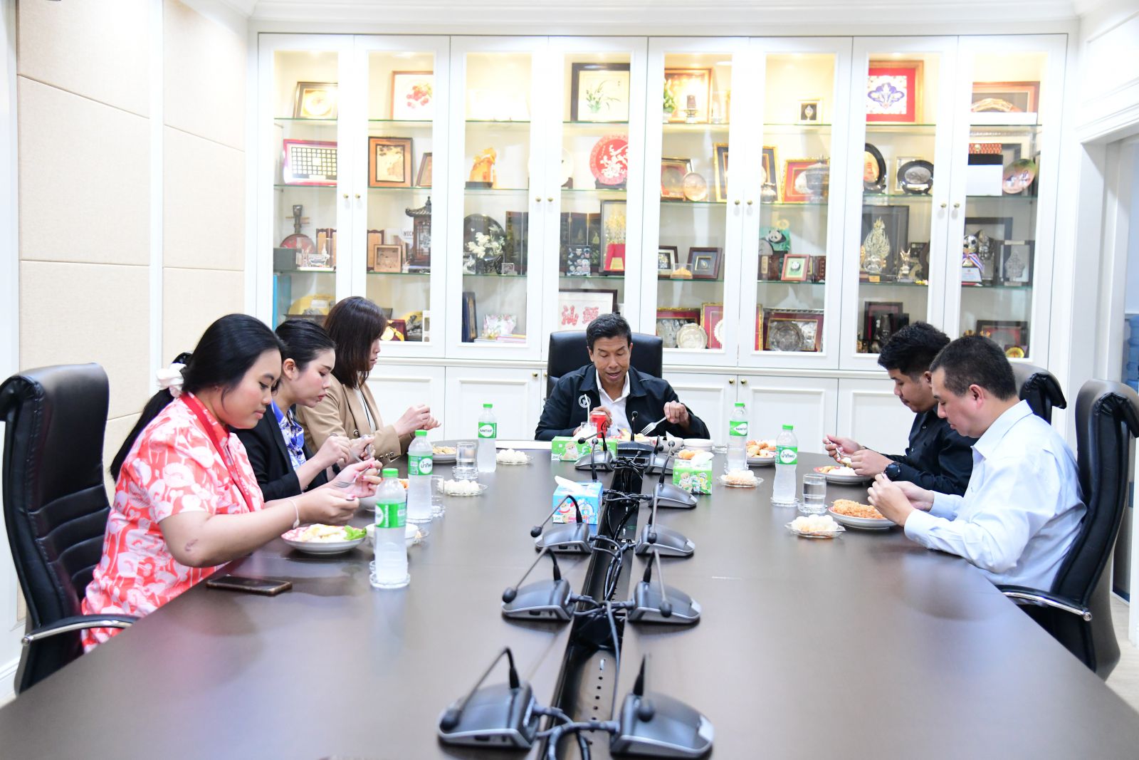 สำหรับกิจกรรม ผู้ว่าฯ สัญจร ในวันนี้ ผู้ว่าราชการกรุงเทพมหานครได้ร่วมรับประทานอาหารกลางวันกับเจ้าหน้าที่สำนักงานการต่างประเทศ จำนวน 5 คน ได้แก่ 1. นายณัฐวัฒน์ ศิลปโสภาพันธุ์ นักจัดการงานทั่วไปชำนาญการ 2. นางสาววีรนุช เนาวศักดิ์ นักวิเทศสัมพันธ์ปฏิบัติการ 3. นางสาววรณัน ธรรมโชติ นักวิเทศสัมพันธ์ปฏิบัติการ 4. นางสาวพิมพิชา เกิดมณี นักวิเทศสัมพันธ์ปฏิบัติการ และ 5. นายพงศกร สินธวาชีวะ พนักงานขับรถยนต์ ส 1 โดยเมนูอาหาร ประกอบด้วย ข้าวสวย ไข่เจียว แกงเขียวหวานไก่ เผือก/เต้าหู้ทอดร้านดังย่านเสาชิงช้า และเมนูข้าวไข่ฟู พะแนงหมู สปาเกตตีผัดขี้เมาทะเล ข้าวผัดอเมริกันไข่ดาวไส้กรอกและแฮม ข้าวอบซี่โครงหมูและไข่ดาว ข้าวราดผัดผงกระหรี่ทะเล ซึ่งระหว่างมื้ออาหารมีการพูดคุยถึงเรื่องต่าง ๆ อาทิ ปัญหาอุปสรรคจากการทำงาน สิ่งที่ต้องการให้ผู้บริหารกรุงเทพมหานครเพิ่มเติมในการเพิ่มประสิทธิภาพการทำงาน เป็นต้น โดยบรรยากาศเป็นไปอย่างอบอุ่นและเป็นกันเอง