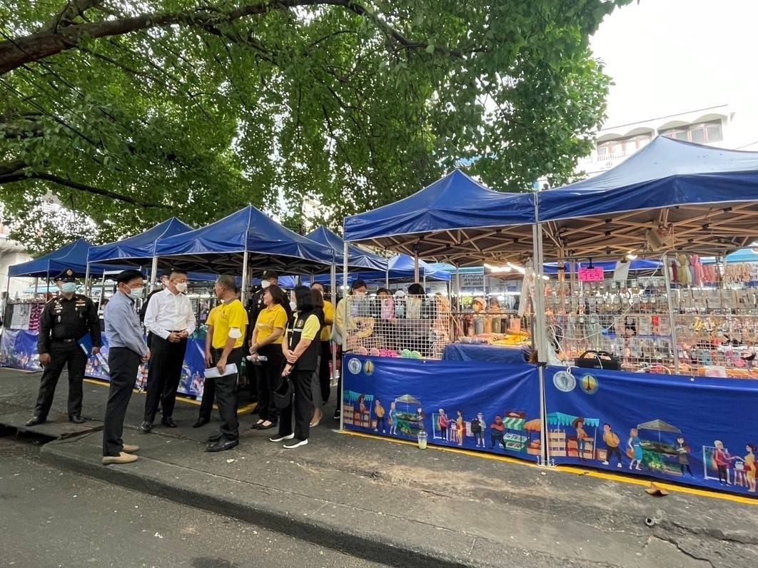 ตรวจพื้นที่ Hawker Center บริเวณเกาะดินแดง อนุสาวรีย์ชัยสมรภูมิ ที่ผ่านมา เขตฯ ได้สำรวจและพิจารณาพื้นที่ซึ่งมีความเหมาะสมเพื่อจัดทำ Hawker Center อาจเป็นพื้นที่ว่างหรือตลาดนัดเอกชน โดยคำนึงถึงช่วงเวลาทำการค้าและความสะดวกในการเข้าถึงพื้นที่ทั้งผู้ค้าและผู้ซื้อ เป็นไปตามนโยบายของผู้ว่าราชการกรุงเทพมหานคร โดยเน้นจุดที่มีความต้องการของผู้บริโภค อยู่ใกล้กับพื้นที่ทำการค้าเดิม มีจุดล้างทำความสะอาดภาชนะ จุดคัดแยกขยะและกำจัดขยะรวม ซึ่งเขตฯ ได้ปรับปรุงพื้นที่ว่างบริเวณเกาะดินแดง ขีดสีตีเส้นกำหนดพื้นที่ตั้งวางแผงค้า รองรับผู้ค้าได้ 20 ราย ส่วนร้านค้าเดิมที่ตั้งอยู่ด้านในได้พัฒนาทำความสะอาดพื้นที่ จัดวางโต๊ะเก้าอี้สำหรับนั่งรับประทานอาหารให้เป็นระเบียบยิ่งขึ้น ทั้งนี้ รองผู้ว่าราชการกรุงเทพมหานคร ได้มอบหมายให้เขตฯ พิจารณาถึงความเหมาะสมในการใช้พื้นที่อื่นๆ เพื่อจัดทำ Hawker Center โดยเน้นย้ำให้เป็นไปตามวัตถุประสงค์ พร้อมทั้งกวดขันผู้ค้าไม่ให้ตั้งวางสิ่งของรุกล้ำแนวเส้นที่กำหนดไว้ ตลอดจนขอความร่วมมือผู้ค้าให้เก็บอุปกรณ์และทำความสะอาดพื้นที่หลังเลิกทำการค้าในแต่ละวัน รวมถึงพิจารณาหาแนวทางยุบรวมพื้นที่ทำการค้าที่มีผู้ค้าจำนวนน้อยราย โดยจัดหาพื้นที่ใกล้เคียงกับจุดเดิม หรือพื้นที่ Hawker Center เพื่อให้ผู้ค้าย้ายเข้ามาทำการค้าในจุดเดียวกัน