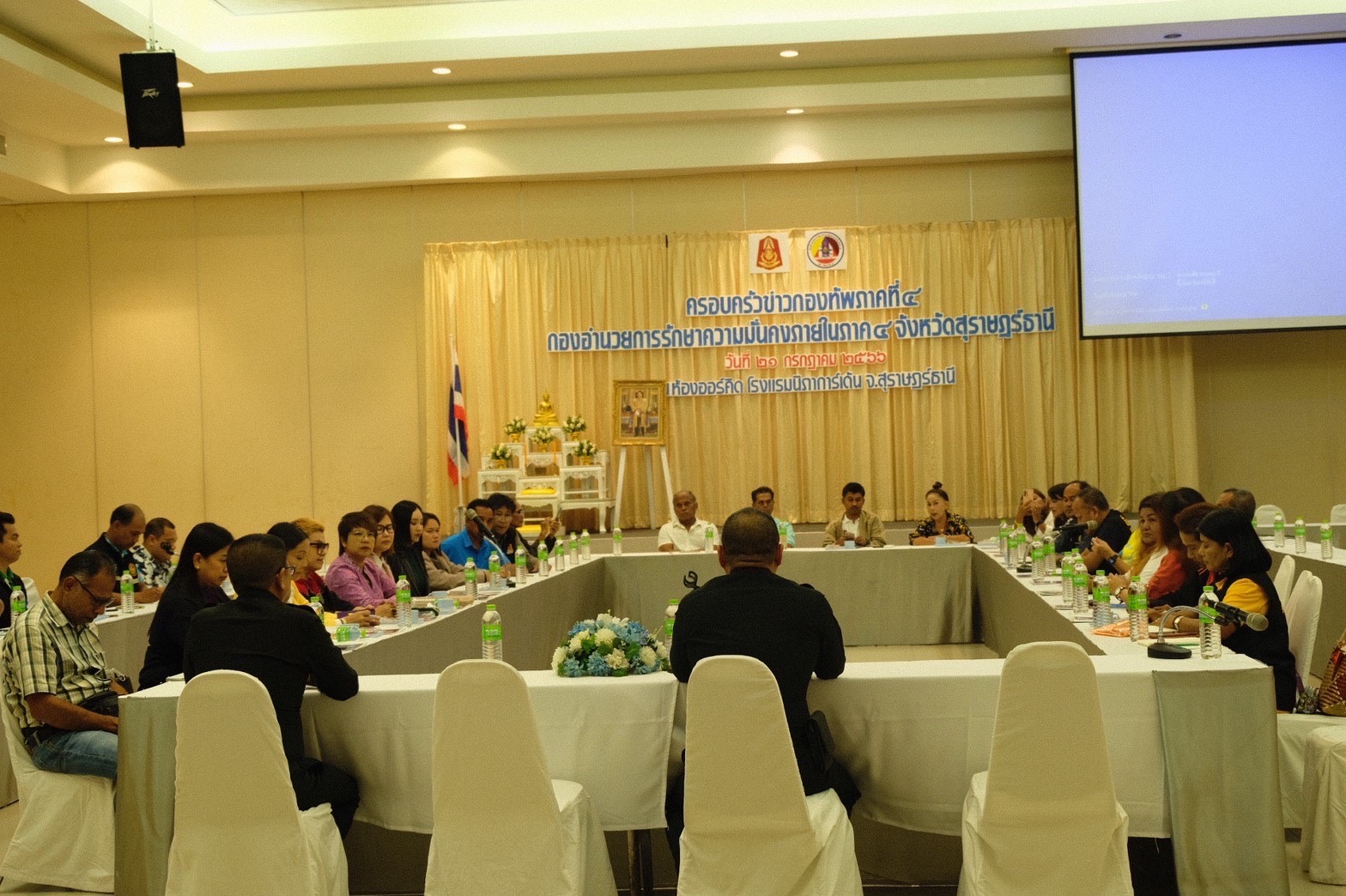 สมาคมสื่อภูมิภาคจังหวัดสุราษฎร์ธานี ชมรมสื่อออนไลน์เมืองร้อยเกาะ ชมรมนักข่าวจังหวัดสุราษฎร์ธานี อสมท. และสื่อมวลชนอิสระ รวมกว่า 50 ท่าน และ ศูนย์ประชาสัมพันธ์ของ มณฑลทหารบกที่ 45 เข้าร่วมประชุมกับ ศูนย์ประชาสัมพันธ์กองทัพภาคที่ 4 โดยมี พันเอก ภัทรชัย แทนขำ หัวหน้าศูนย์ประชาสัมพันธ์กองทัพภาคที่ 4 เป็นผู้แทนกองทัพภาคที่ 4 ในการร่วมกิจกรรมในครั้งนี้ สำหรับวัตถุประสงค์การจัดกิจกรรมเพื่อสร้างความสัมพันธ์ที่ดีกับสื่อมวลชนในพื้นที่ และแลกเปลี่ยนข่าวสารในการประชาสัมพันธ์ภารกิจของกองทัพให้เกิดการสร้างการรับรู้อย่างแพร่หลาย ในกิจกรรมได้มีการแลกเปลี่ยนความรู้และข้อเสนอแนะของการที่ "สื่อสามารถเข้าถึงข้อมูลข่าวสารของหน่วยทหารได้อย่างไร "และ "สื่อจะทำงานกับหน่วยทหารในการเข้าไปช่วยเหลือพี่น้องประชาชนได้อย่างไร" ทั้งนี้ สื่อมีความยินดีที่จะให้ความร่วมมือในการเผยแพร่กิจกรรมของกองทัพ รวมถึงข่าวสารที่เป็นผลงานของกองทัพในช่องทางที่สื่อมวลชนมีอยู่ เพื่อสร้างการรับรู้ให้กับพี่น้องประชาชน