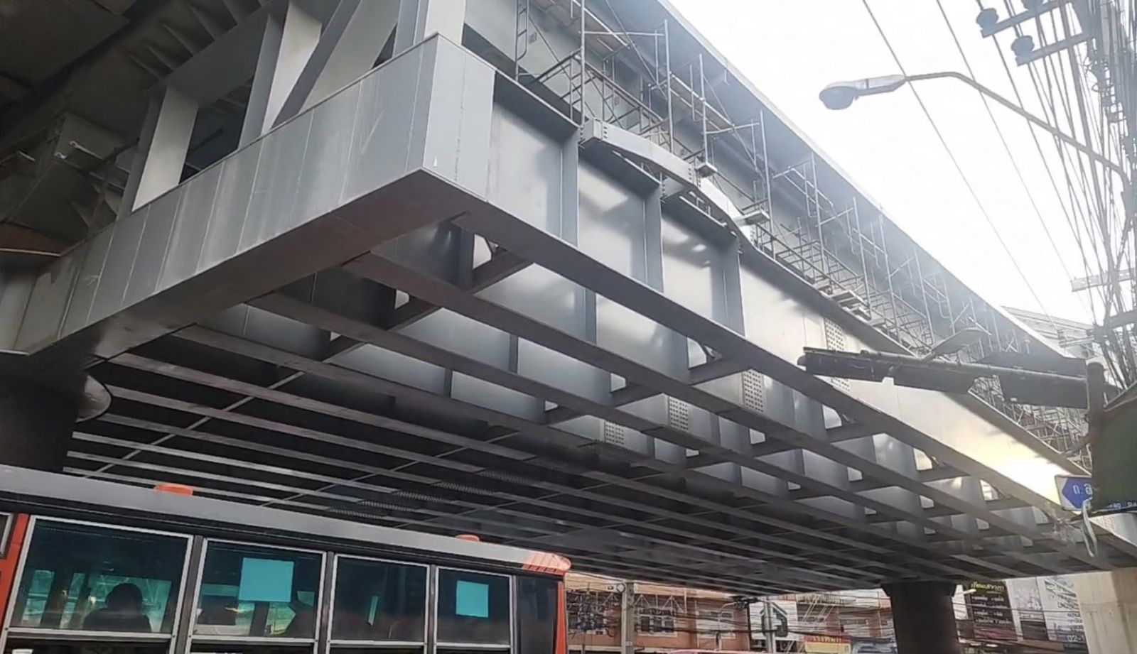 จากนั้นเดินทางต่อโดยรถไฟฟ้าสายสีเหลืองสถานีลาดพร้าว มายังสถานีบางกะปิ เดินเท้าสำรวจตามแนวสะพานข้ามแยกบางกะปิ จนถึงบริเวณหน้าสำนักงานเขตบางกะปิ ตรวจดูการก่อสร้างสกายวอล์ค และลานกิจกรรมลอยฟ้า โดยได้กำชับเจ้าหน้าที่ผู้เกี่ยวข้องให้ระมัดระวังความปลอดภัยในการก่อสร้าง โดยเฉพาะวัสดุสิ่งก่อสร้างต่าง ๆ ที่อาจร่วงหล่นลงมาบนถนนและอาจโดนผู้คนที่สัญจรไปมาเบื้องล่างได้