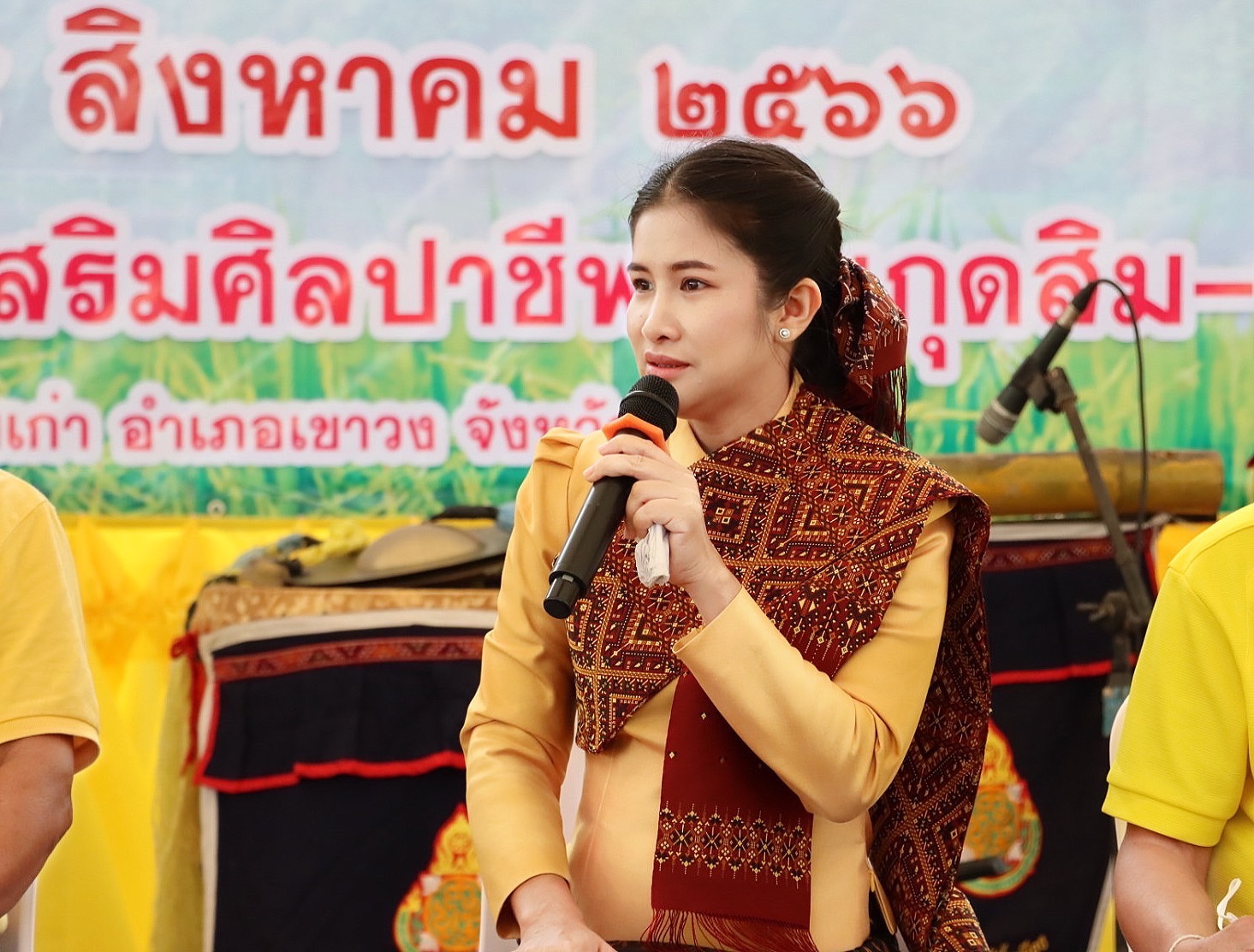 ขณะที่นางสาววิภาวี บุญเรือง นายกเทศมนตรีตำบลกุดสิม กล่าวว่า ด้วยพระมหากรุณาธิคุณพระบาทสมเด็จพระบรมชนกาธิเบศร มหาภูมิพลอดุลยเดชมหาราช บรมนาถบพิตร อันหาที่สุดมิได้นี้ ได้ตราตรึงในดวงใจของพสกนิกร อ.เขาวงมาโดยตลอด พสกนิกรชาว อ.เขาวงทุกหมู่เหล่า ตระหนักในการสืบสานพระราชปณิธาน และหลักการทรงงานของพระบาทสมเด็จพระบรมชนกาธิเบศร มหาภูมิพลอดุลยเดชมหาราช บรมนาถบพิตร รวมทั้งแนวพระราชดำริมาเป็นแบบอย่างในการดำเนินชีวิตตลอดมา เช่น โครงการพัฒนาพื้นที่เกษตรน้ำฝนบ้านแดนสามัคคี โครงการพัฒนาลุ่มน้ำลำพะยังตอนบนอันเนื่องมาจากพระราชดำริ โครงการอุโมงค์ผันน้ำลำพะยังภูมิพัฒน์ และหลักปรัชญาของเศรษฐกิจพอเพียง โดยนำมาประยุกต์ใช้จนเป็นจุดศึกษาเรียนรู้สาธิตการทำการเกษตรทฤษฎีใหม่ โดยเฉพาะที่เป็นเอกลักษณ์ของชุมชนชาวผู้ไท เช่น หัตถกรรมทอผ้า ทำเครื่องจักสาน ข้าวเหนียว ข้าวจ้าวและข้าวโพด