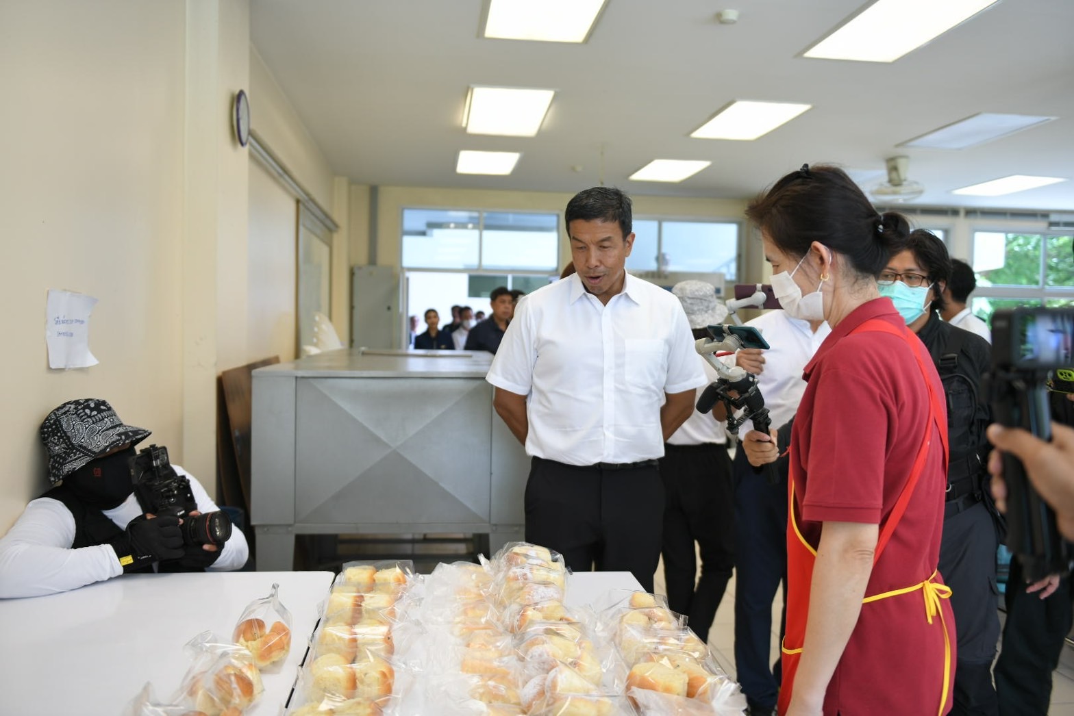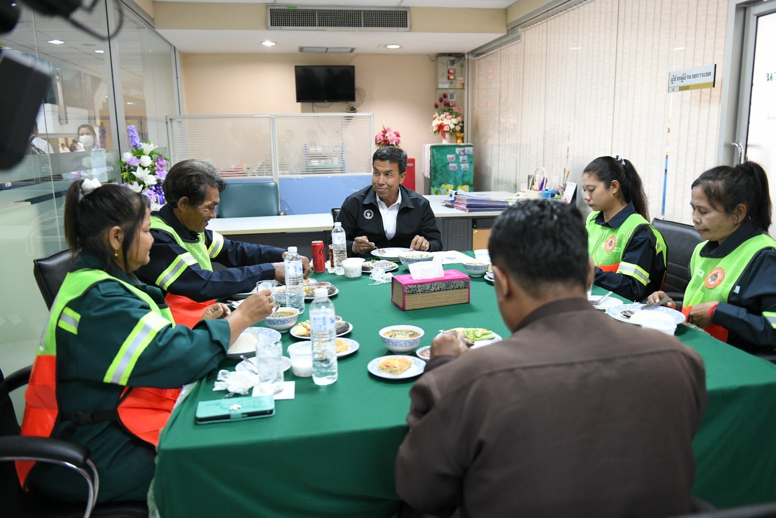 ภายหลังเสร็จสิ้นการประชุม ผู้ว่าราชการกรุงเทพมหานคร ได้รับประทานอาหารกลางวันร่วมกับบุคลากรสำนักงานเขตสะพานสูง จำนวน 5 คน ได้แก่ นายอรรถพันธ์ ทุดปอ ลูกจ้างประจำ ตำแหน่งทั่วไป (เก็บขนมูลฝอย) นางพรประเสริฐ บัวโค้ง ลูกจ้างชั่วคราว ตำแหน่งพนักงานสวนสาธารณะ นางสาววิภาวัลย์ มากมี ลูกจ้างชั่วคราว ตำแหน่ง พนักงานทั่วไป (กวาด) นางสาวกัญญาภัค พันธุ์รัตน์ ลูกจ้างชั่วคราว ตำแหน่ง พนักงานทั่วไป (กวาด) และนายสุทิน โทอึ้น ลูกจ้างประจำ ตำแหน่งพนักงานทั่วไป (ระบายน้ำ) พร้อมทั้งสอบถามเรื่องทั่วไป ชีวิตความเป็นอยู่ อายุราชการ ความก้าวหน้าในหน้าที่การงาน รับฟังข้อเสนอแนะต่างๆ ปัญหาและอุปสรรคในการทำงาน ตลอดจนให้กำลังใจในการปฏิบัติหน้าที่ร่วมกันทำงานเพื่อประชาชนและพัฒนากรุงเทพมหานคร ทั้งนี้การรับประทานอาหารกลางวันเป็นส่วนหนึ่งในกิจกรรม “ผู้ว่าฯ สัญจร” โดยให้ความสำคัญกับบุคลากรทุกคนอย่างเท่าเทียมกันโดยไม่เลือกปฏิบัติ ซึ่งบุคลากรดังกล่าวจะปฏิบัติงานใกล้ชิดประชาชนอยู่ในพื้นที่และเข้าถึงปัญหามากที่สุด สำหรับรายการอาหาร ประกอบด้วย ข้าว ปลาทู น้ำพริกกะปิ ผักเคียง ไข่เจียวทรงเครื่อง แกงจืดเยื่อไผ่ บัวลอยเผือก