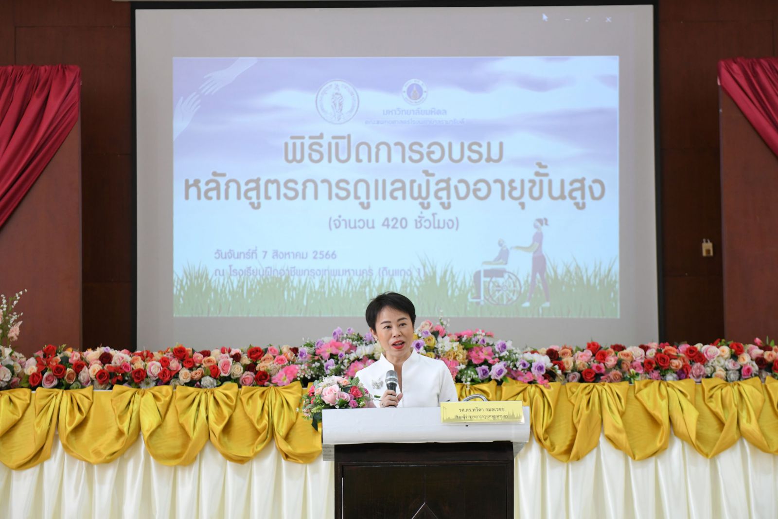 กรุงเทพฯ-(7 ส.ค.66) รศ.ทวิดา กมลเวชช รองผู้ว่าราชการกรุงเทพมหานคร เป็นประธานเปิดการอบรมหลักสูตรการดูแลผู้สูงอายุขั้นสูง (จำนวน 420 ชั่วโมง) ณ โรงเรียนฝึกอาชีพกรุงเทพมหานคร (ดินแดง 1)