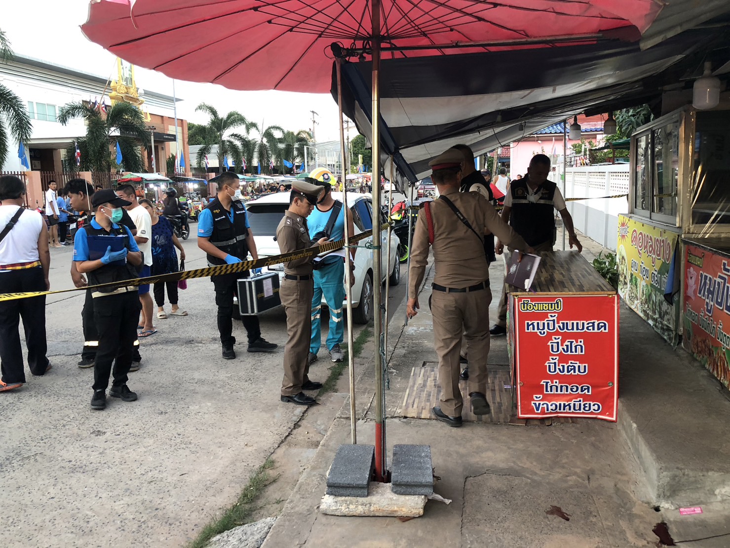 สอบถามนางนวลจันทร์ ชัยผา อายุ 63 ปี แม่ค้าขายข้างแกงอยู่ตรงข้ามกัน ซึ่งเป็นภรรยานายวรรณา ชัยผา อายุ 63 ปี ผู้ก่อเหตุ เล่าว่า ก่อนที่เกิดเหตุนั้น ตนยังเห็นสามีบรรจุอาหาร ข้าวแกง ใส่ถุงเตรียมขายให้ลูกค้าตามปกติ ก่อนที่ต่อมาจะได้ยินดังเหมือนเสียงยางรถจักรยานยนต์ระเบิด ทางด้านฝั่งตรงข้ามซึ่งเป็นร้านน้องแชมป์ จากนั้นก็เห็นสามีวิ่งข้ามถนนมาขับขี่รถจักรยานยนต์ที่จอดอยู่ข้างร้านออกไป พร้อมที่ได้ยินเสียงพ่อค้าแม่ค้าและลูกค้าที่กำลังมาเดินเลือกซื้ออาหารร้องตะโกนว่านายแมวถูกยิง และนอนล้มฟุบกับพื้นแล้ว