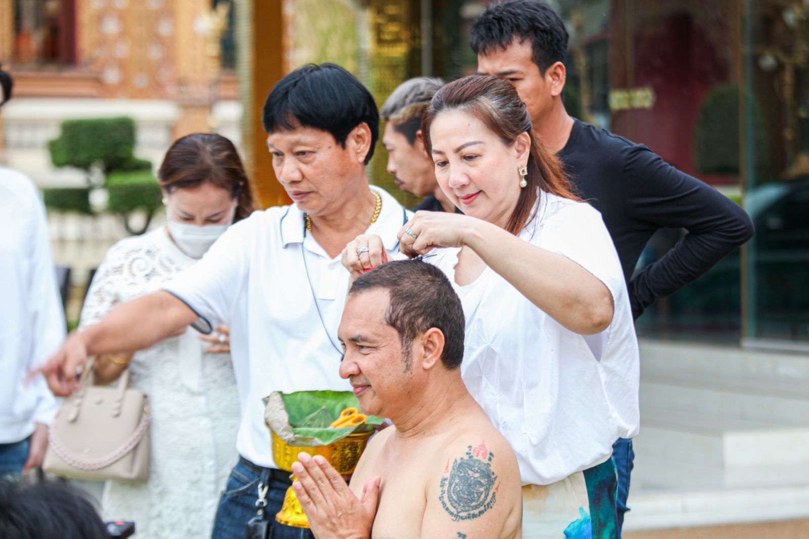 ในช่วงเช้าพระครูปลัดสิทธิวัฒน์ (หลวงพี่น้ำฝน) เจ้าอาวาสวัดไผ่ล้อม เป็นประธาน ในการปลงผมซึ่งคนในครอบครัวต่างยิ้มแย้มและปิติกับการเข้าสู่ร่มกาสาวพัสตร์ ของตลกรุ่นใหญ่ซึ่งเป็นที่รักของคนในวงการบันเทิง จากนั้นได้เข้าสู่พิธีการอุปสมบทโดยใช้เวลาราว 1 ชั่วโมงจึงเป็นเสร็จพิธี โดยได้รับฉายาทางพระว่า "ภูริวฑฺฒโก" โดยจะใช้เวลาในการบวชระยะสั้นเป็นเวลา 10 วัน