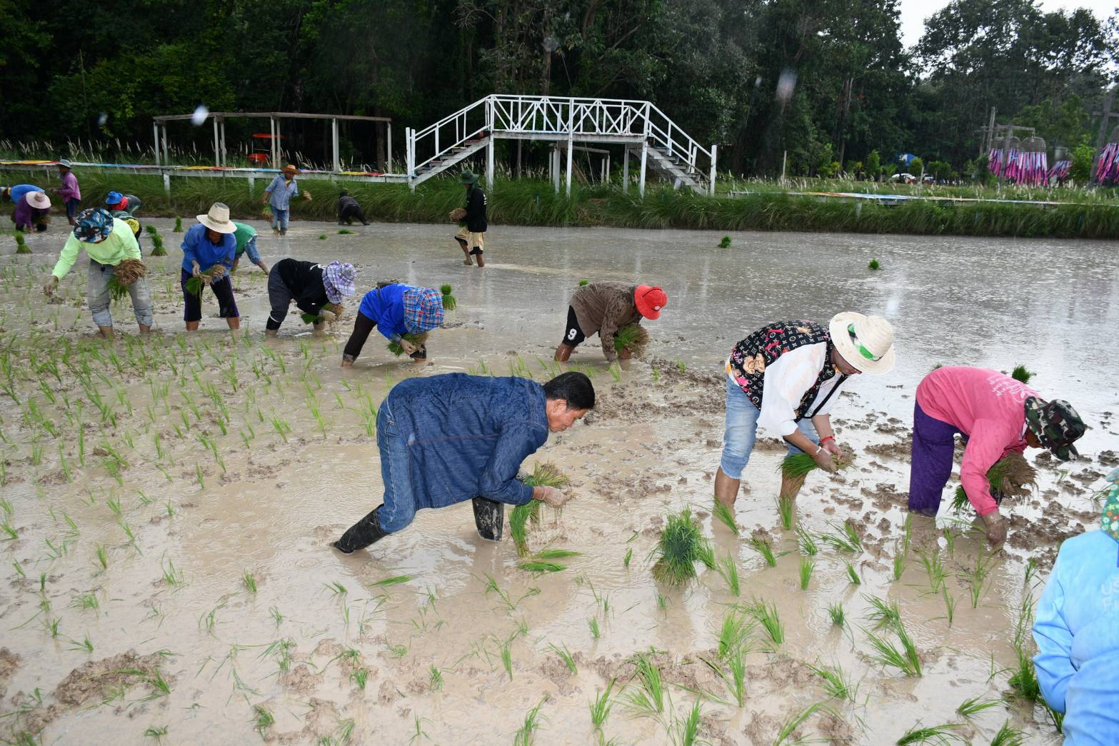วัดป่าพิมลฯนำดำนาวันแม่เกี่ยวข้าววันพ่อ 'ดร.แก้ว'ใส่บู๊ทดำนาเทิดพระเกียรติ