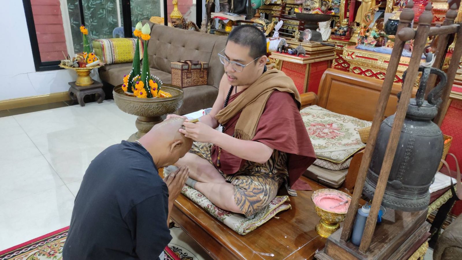 โดยวันนี้อาจารย์ฤาษี ธาตุพุทธคุณได้แจกเหรียญเต่ามังกรแก่ปะชาชนที่มากราบไหว้สิ่งศักดิ์สิทธิ์ภายในอาศรม และผู้สื่อข่าวได้พบกับตาลือตกบ้าน เจ้าของเพจล่าผีและยูทูปเบอร์ชื่อดังที่มากราบไหว้ขอพรปู่ฤาษีพรหมเมศและได้ให้อาจารย์ฤาษีเณร ธาตุพุทธคุณ เจิมและลงอักขระเลขยันต์เพื่อความเป็นสิริมงคลและยังได้ไปส่องเลขอ่างน้ำมนต์ของอาศรมฤาษีเณรโดยตาลือบอกว่าชอบเลข 56 หรือ 59 ภายในอ่างน้ำมนต์เพราะ 6 และ 9 เป็นเลขเดียวกัน