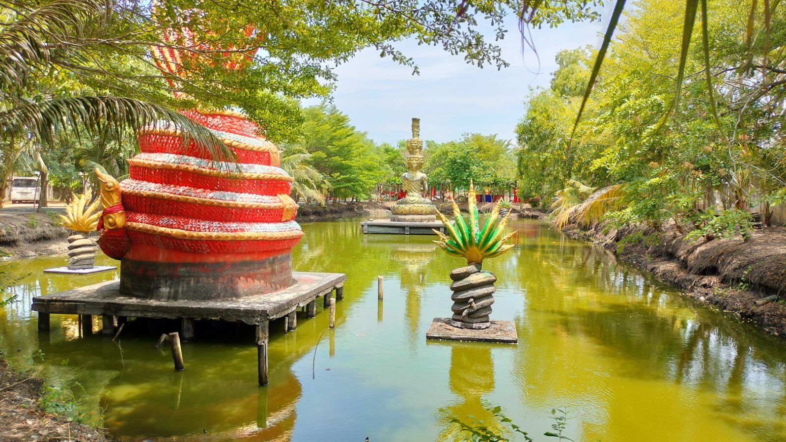 ฉะเชิงเทรา-อึ้งหนุ่มใหญ่ทุ่มทุนกว่า 30 ล้านบาท สร้างเทวสถานเป็นดินแดน “วังมรกตชมพูทวีป” ผุดเทวรูปปูนปั้นไว้นับพันองค์ เก็บซ่อนมายาวนานถึงกว่า 10 ปีก่อนเปิดให้บุคคลภายนอกได้เข้าเที่ยวชมอย่างตระการตา ส่วนใหญ่เป็นเทพในศาสนาพราหมณ์-ฮินดู โดยมีพระพุทธรูปพระศรีอริยเมไตรยเป็นองค์ประธาน รายล้อมด้วยเหล่าหมู่ฤๅษีและเทพนาคาพญายางู และนางไม้
