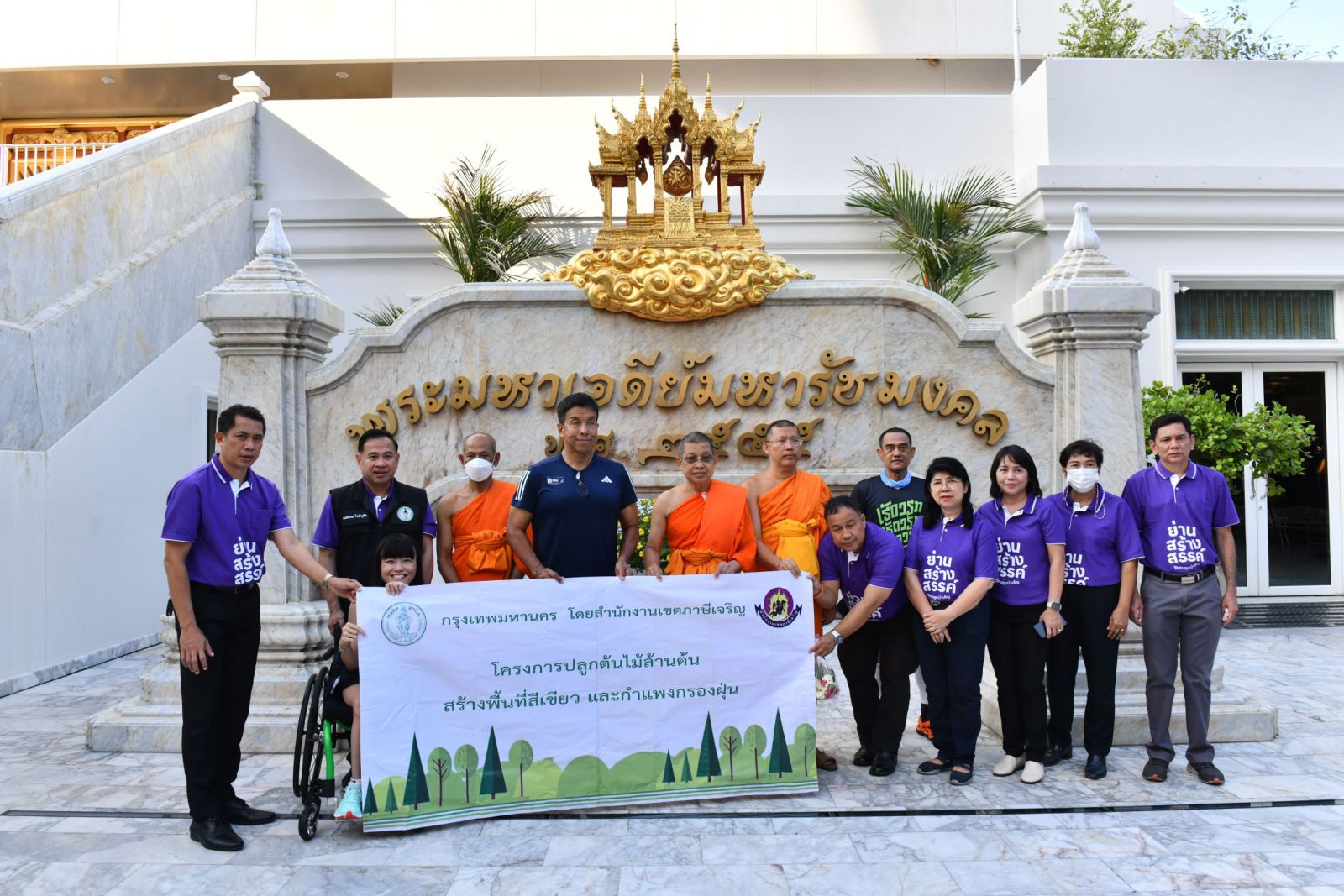 กรุงเทพฯ-(19 ส.ค. 66) 07.30 น. : นายชัชชาติ สิทธิพันธุ์ ผู้ว่าราชการกรุงเทพมหานคร พร้อมด้วย นายขจิต ชัชวานิชย์ ปลัดกรุงเทพมหานคร นายเฉลิมพล โชตินุชิต รองปลัดกรุงเทพมหานคร พระพรหมโมลี (สุชาติ ธัมมรตโน) เจ้าอาวาสวัดปากน้ำภาษีเจริญ คณะผู้บริหารกรุงเทพมหานคร ผู้บริหารและเจ้าหน้าที่เขตภาษีเจริญ ร่วมกิจกรรมปลูกต้นไม้ โดยผู้ว่าฯ ชัชชาติ ปลูกต้นมั่งมี และคณะผู้บริหาร ปลูกต้นนางกวัก ต้นเตยหอม ต้นบุนนาค ต้นลำดวน รวมทั้งหมด 16 ต้น ณ สวนวัดปากน้ำภาษีเจริญ เพื่อสร้างพื้นที่สีเขียว