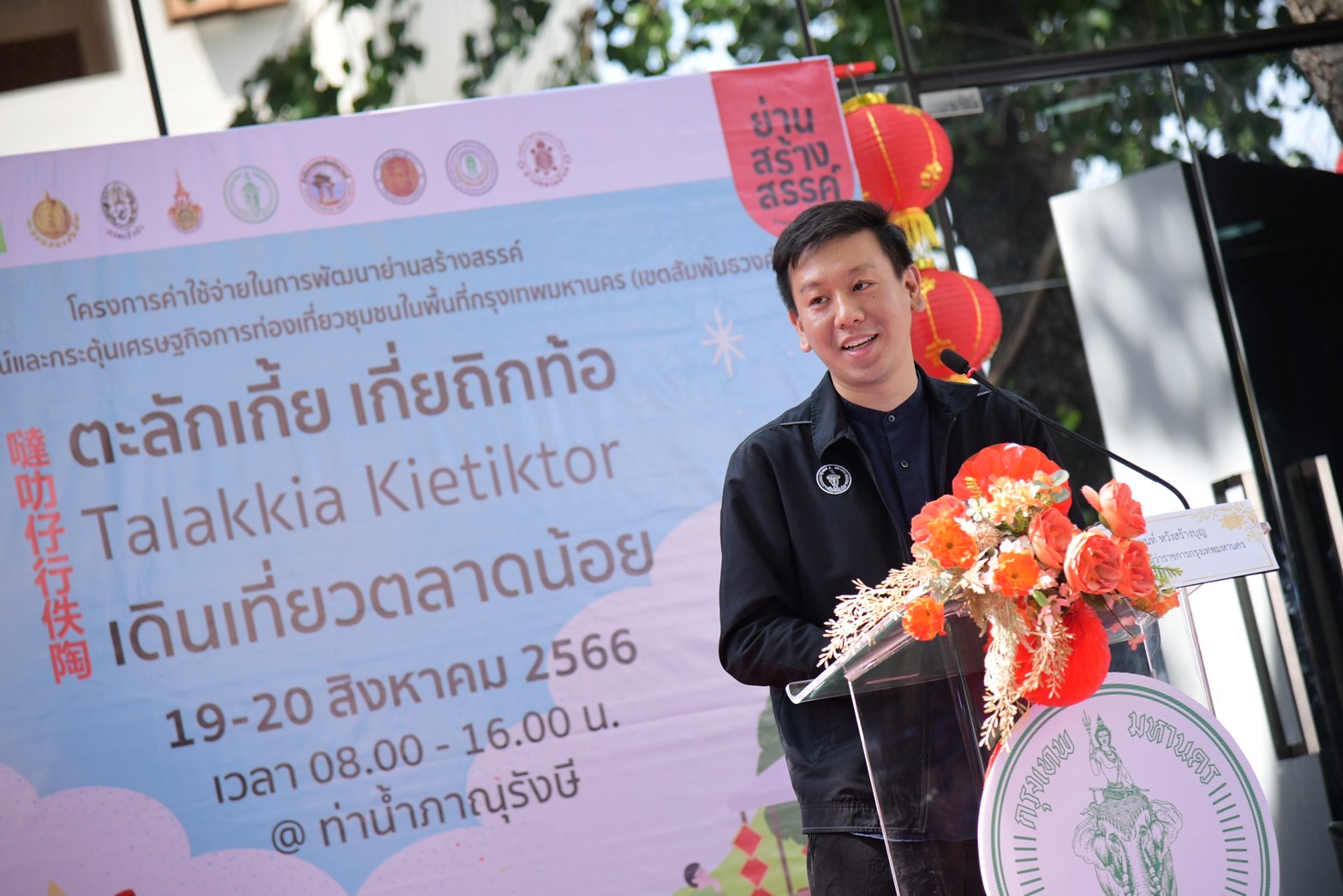 กรุงเทพฯ-(20 ส.ค. 66) นายศานนท์ หวังสร้างบุญ รองผู้ว่าราชการกรุงเทพมหานคร ประธานในพิธีเปิดโครงการค่าใช้จ่ายในการพัฒนาย่านสร้างสรรค์ เพื่อส่งเสริมอัตลักษณ์และกระตุ้นเศรษฐกิจการท่องเที่ยวชุมชนในพื้นที่กรุงเทพมหานคร (เขตสัมพันธวงศ์) “ตะลักเกี้ย เกี่ยถิกท้อ เดินเที่ยวตลาดน้อย" ณ บริเวณท่าน้ำภาณุรังสี เขตสัมพันธวงศ์