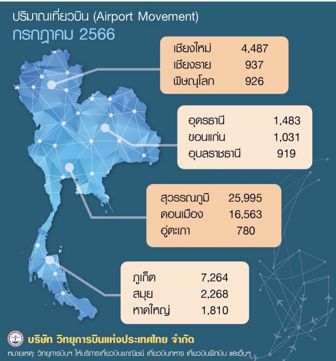 “ ในเดือนกรกฎาคมที่ผ่านมา ทั้ง 2 สนามบินมีจำนวนเที่ยวบินรวม 3,022 เที่ยวบิน ผู้โดยสารเป็นนักท่องเที่ยวและประชาชนเดินทางเข้า-ออก จำนวน 255,858 คน หรือวันละ 8,253 คน เฉลี่ยวันละ 98 เที่ยวบิน นับเป็นสถิติตัวเลขที่แสดงถึงสถานการณ์ท่องเที่ยวที่กำลังกลับมาสูงเทียบเคียงใกล้กับปี 2562 ก่อนสถานการณ์แพร่ระบาดโควิด-19 ปัจจุบันที่เกาะสมุย ยังมีเที่ยวบินไม่พอต่อผู้โดยสารที่ต้องการเข้ามา ซึ่งควรมีเที่ยวบินไปกลับเพิ่มเป็นวันละ 100 เที่ยว เนื่องจากในเดือนสิงหาคมนี้ผู้โดยสารเข้า-ออกเพิ่มเป็น 171,834 คน