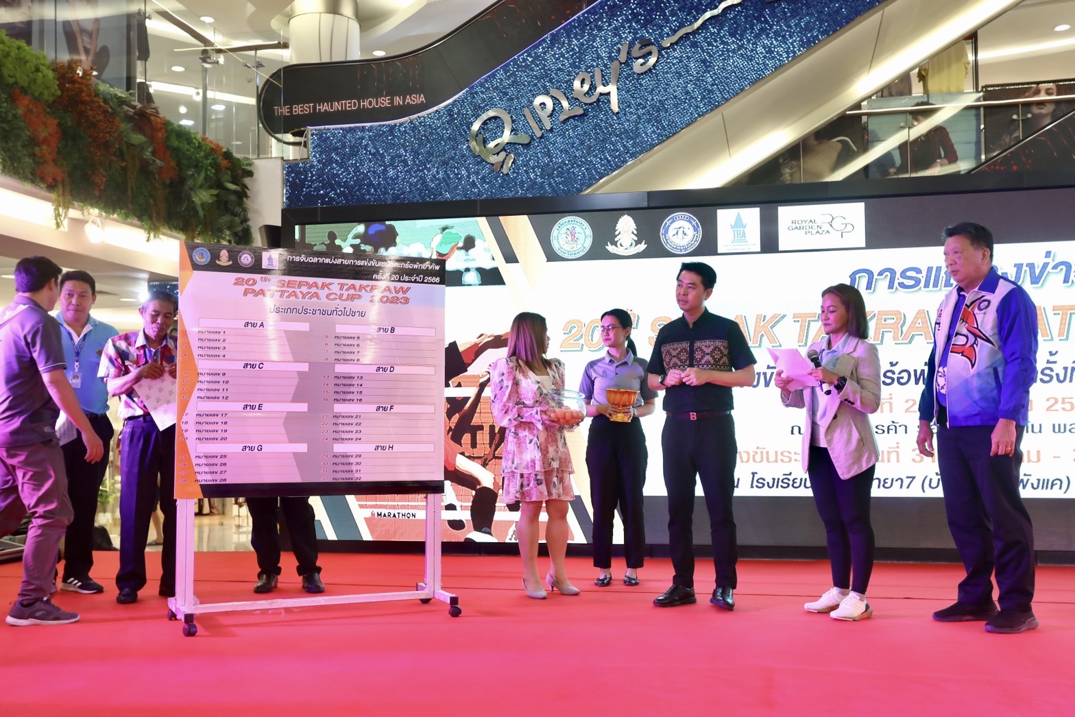 โดยมี นายธนวัฒน์ ประสงค์เจริญ เลขาธิการสมาคมกีฬาตะกร้อแห่งประเทศไทย นายกฤษณะ บุญสวัสดิ์ รองนายกเมืองพัทยา นายไพรวัลย์ อารมณ์ชื่น กรรมการสมาคมกีฬาแห่งจังหวัดชลบุรี และนายสุริยนต์ เอกพันธ์ ตัวแทนผู้จัดการใหญ่ศูนย์การค้าฯ เข้าร่วมการแถลงข่าว