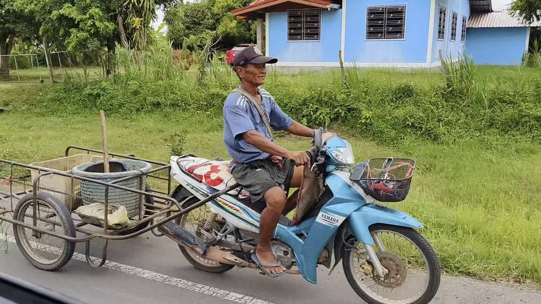 จากนั้นผู้สื่อข่าวจึงได้เดินทางลงพื้นที่ไปพบกับ นายวัน ศุภศร หรือลุงสมพงษ์ อายุ 64 ปี อยู่บ้านเลขที่ 6 หมู่ 2 บ้านราษีพัฒนา ต.ห้วยสำราญ อ.ขุขันธ์ จ.ศรีสะเกษ ซึ่งกำลังเตรียมสิ่งของอุปกรณ์ที่ใช้ในการซ่อมถนน ประกอบด้วย รถจักรยานยนต์ส่วนตัว รถเข็น จอบ และบุ้งกี๋ เพื่อเตรียมออกเดินทางซ่อมถนนตามสายต่างๆ