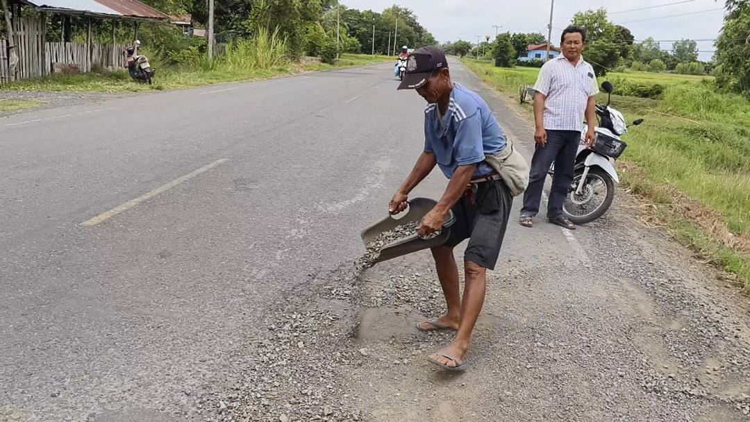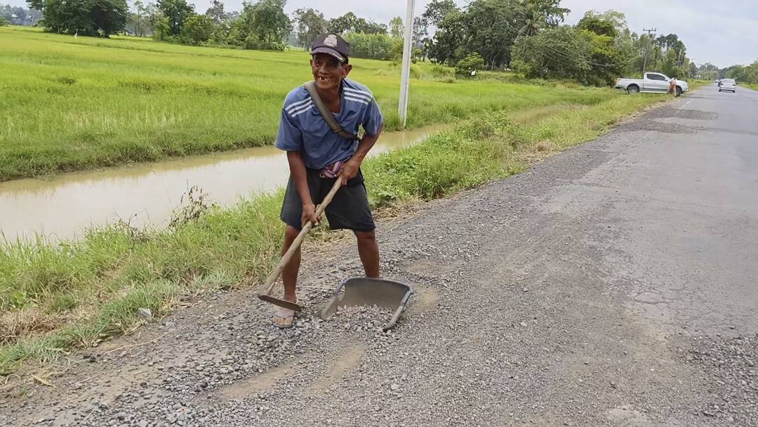 ลุงวัย64ปีฝังใจลูกชายตายเพราะตกหลุม ออกตะเวนอุดหลุมถนนชาวบ้านแห่ชื่นชม