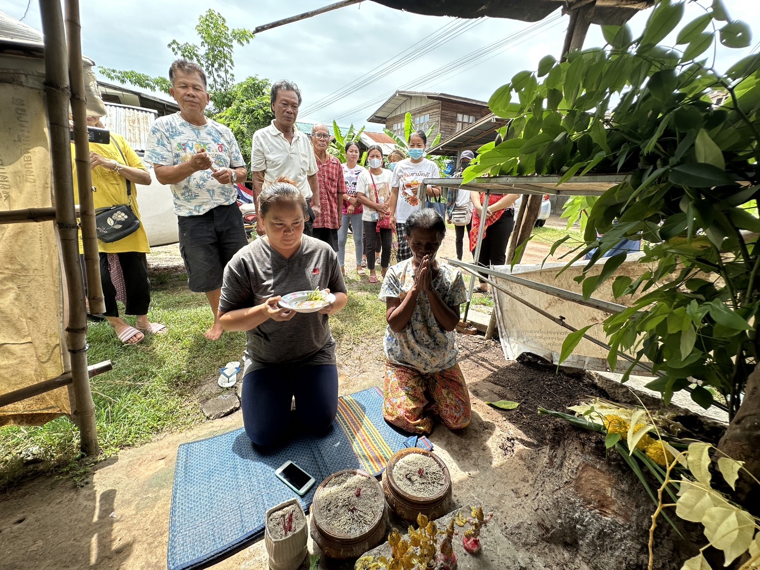 ซึ่งลูกสาวจะเข้าไปรายงานตัวกับผู้อำนวยการโรงเรียนบ้านม่วงซึ่งเป็นโรงเรียนประจำหมู่บ้านต่อไป หลังจากรายงานตัวเข้ารับราชการเสร็จสิ้นจะทำการสู่ขวัญตามประเพณีของอีสานและ จะซื้อชุดไทยสวยๆมาไหว้ขอบพระคุณกับเจ้าแม่ 4 นางที่ผลของการบนบานศาลกล่าวสมหวังเกิดขึ้นจริง