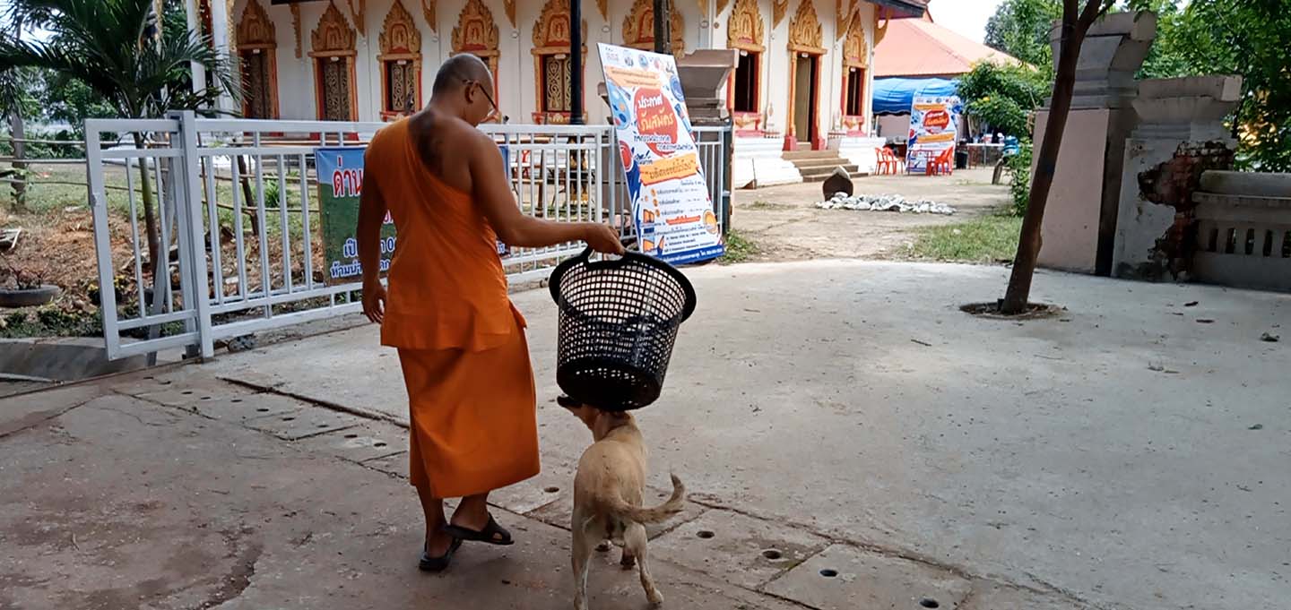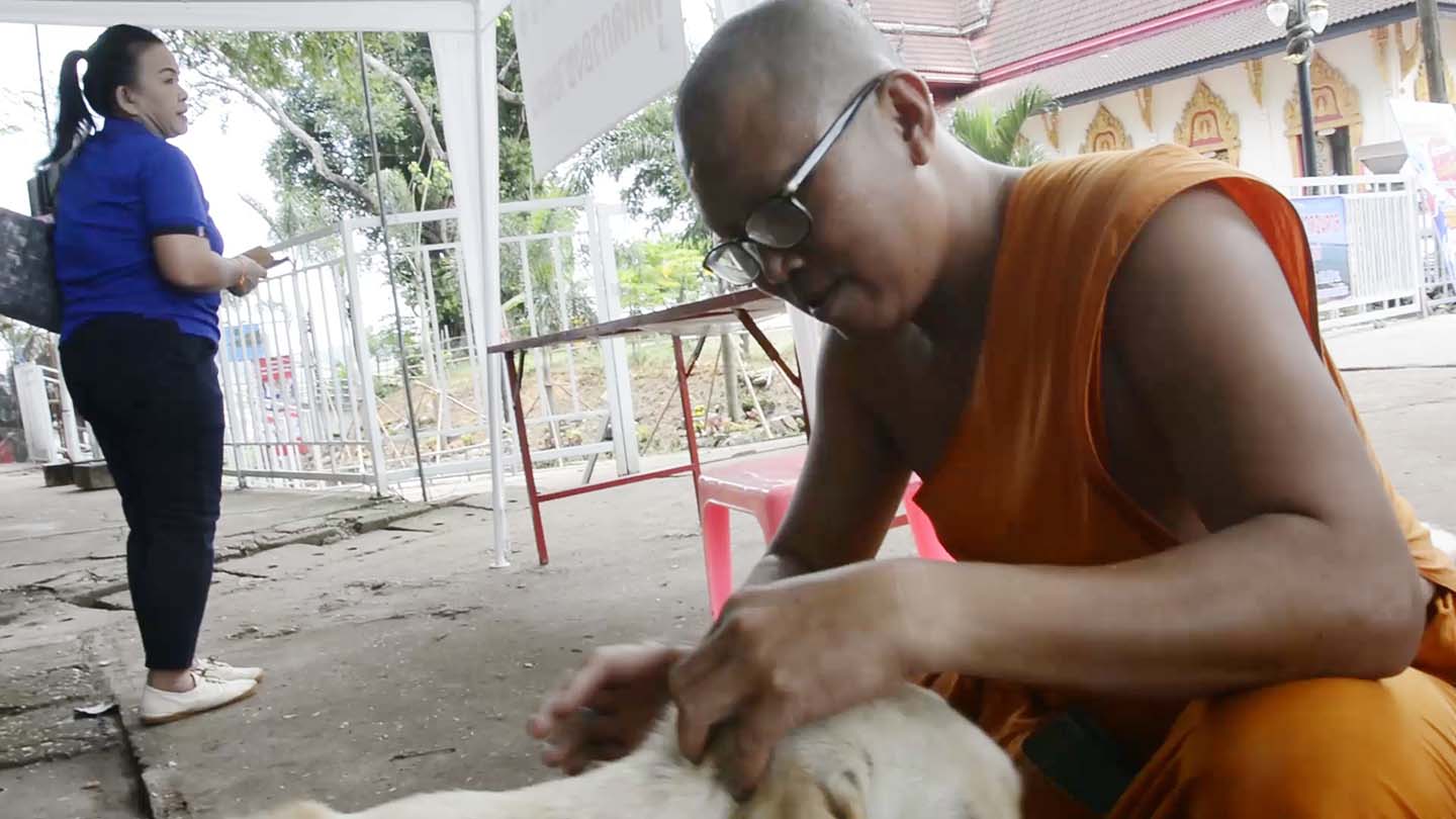 และเมื่อ 2-3 วันที่ผ่านมาได้สังเกตเห็นว่าเจ้าขาว มีท่าทีเหมือนจะคลอดลูก แต่ก็ไม่รู้ว่าจะไปคลอดที่ไหน จนกระทั่งมีชาวบ้านเดินผ่านไปมา ได้ยินเสียงลูกสุนัขร้อง ที่บริเวณใต้ท่อระบายน้ำดังกล่าว ตนจึงได้ขอแรงชาวบ้านให้มาช่วยกันดึงฝาท่อออก เพื่อจะนำลูกสุนัขออกมาจากท่อดังกล่าว ซึ่งลูกสุนัขและเจ้าขาว ตนก็จะได้นำมาเลี้ยงไว้ที่หลังกุฏิ หากมีผู้ใจบุญอยากมาขอไปเลี้ยงตนก็พร้อมจะแบ่งปันไปเลี้ยงด้วยความยินดี…