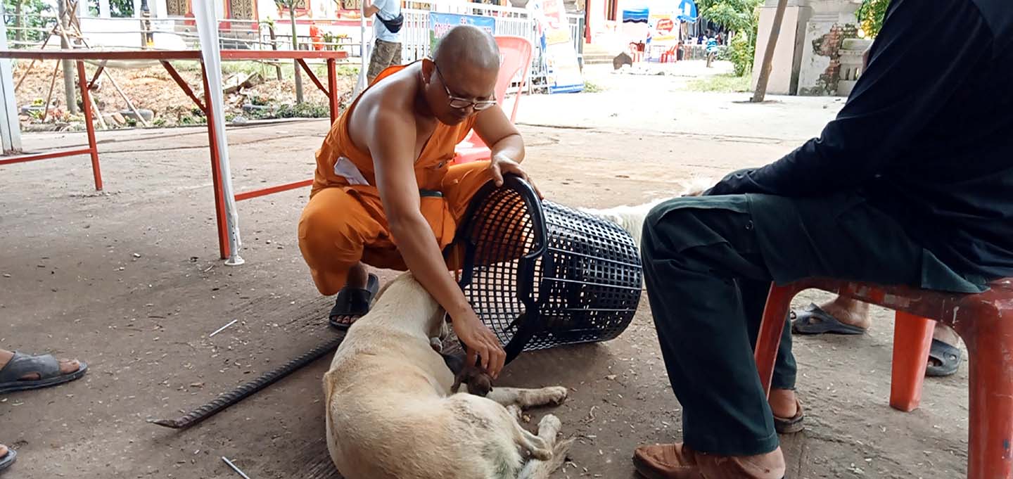 พระวัดท่าดอนตอลช่วยแม่สุนัข-ลูก6ตัว ขึ้นจากท่อระบายน้ำฝนตกหวั่นจมน้ำตาย