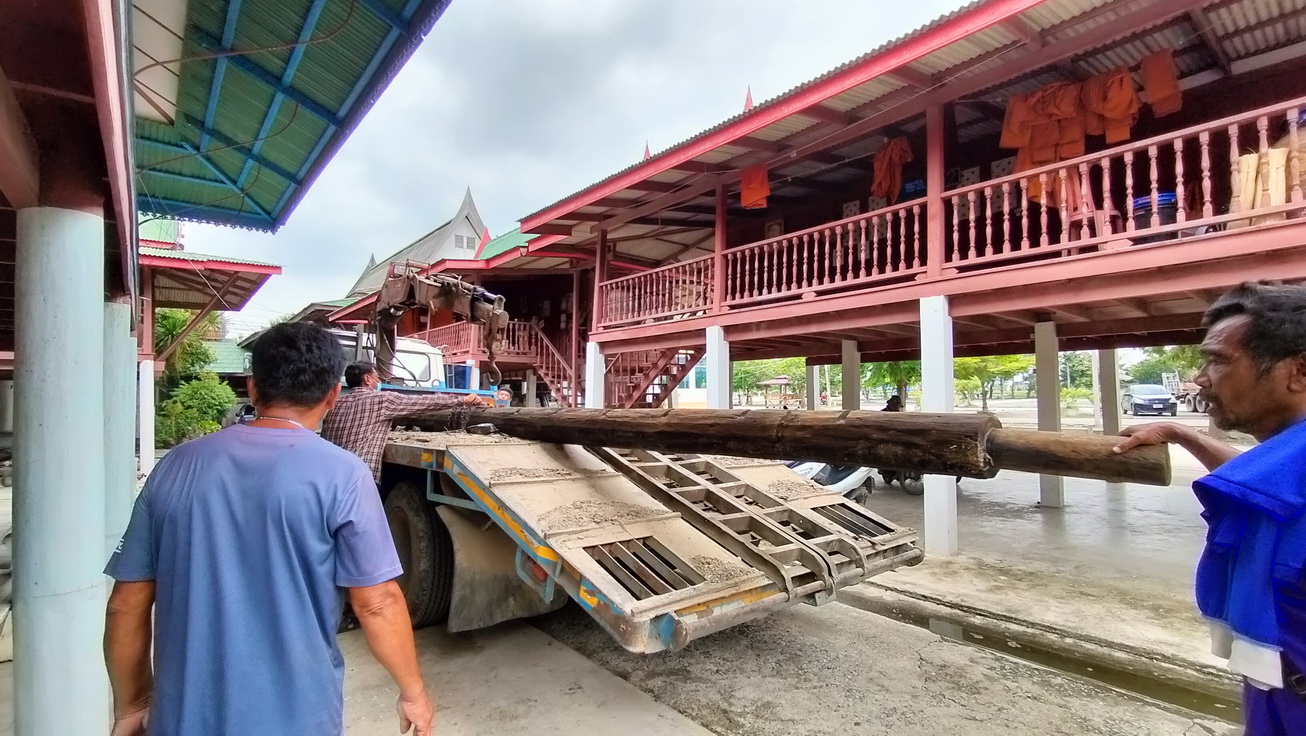 เมื่อทราบจากทางอดีตกำนันว่า ชาวบ้านกำลังจะช่วยกันบูรณะหอสวดมนต์ทรงไทยโบราณเก่าแก่ภายในวัด และต้องการที่จะอนุรักษ์เรือนไทยโบราณเก็บไว้ให้คนรุ่นหลังได้ดู ทางบิดาตน คือ นายสวัสดิ์ โล่รักษา อายุ 86 ปี จึงมีความประสงค์อยากจะร่วมบริจาคเสาไม้ดังกล่าวให้แก่ทางวัดไป เพราะเชื่อว่าเป็นเสาไม้เก่าแก่ที่มีมาแต่โบราณในยุคเดียวกัน เพื่อให้ทางวัดได้นำไปใช้ในการซ่อมแซมใส่แทนเสาไม้ของหอสวดมนต์เดิมที่ผุกร่อนจนบางต้นขาดออกจากฐานโคนเสาแล้ว