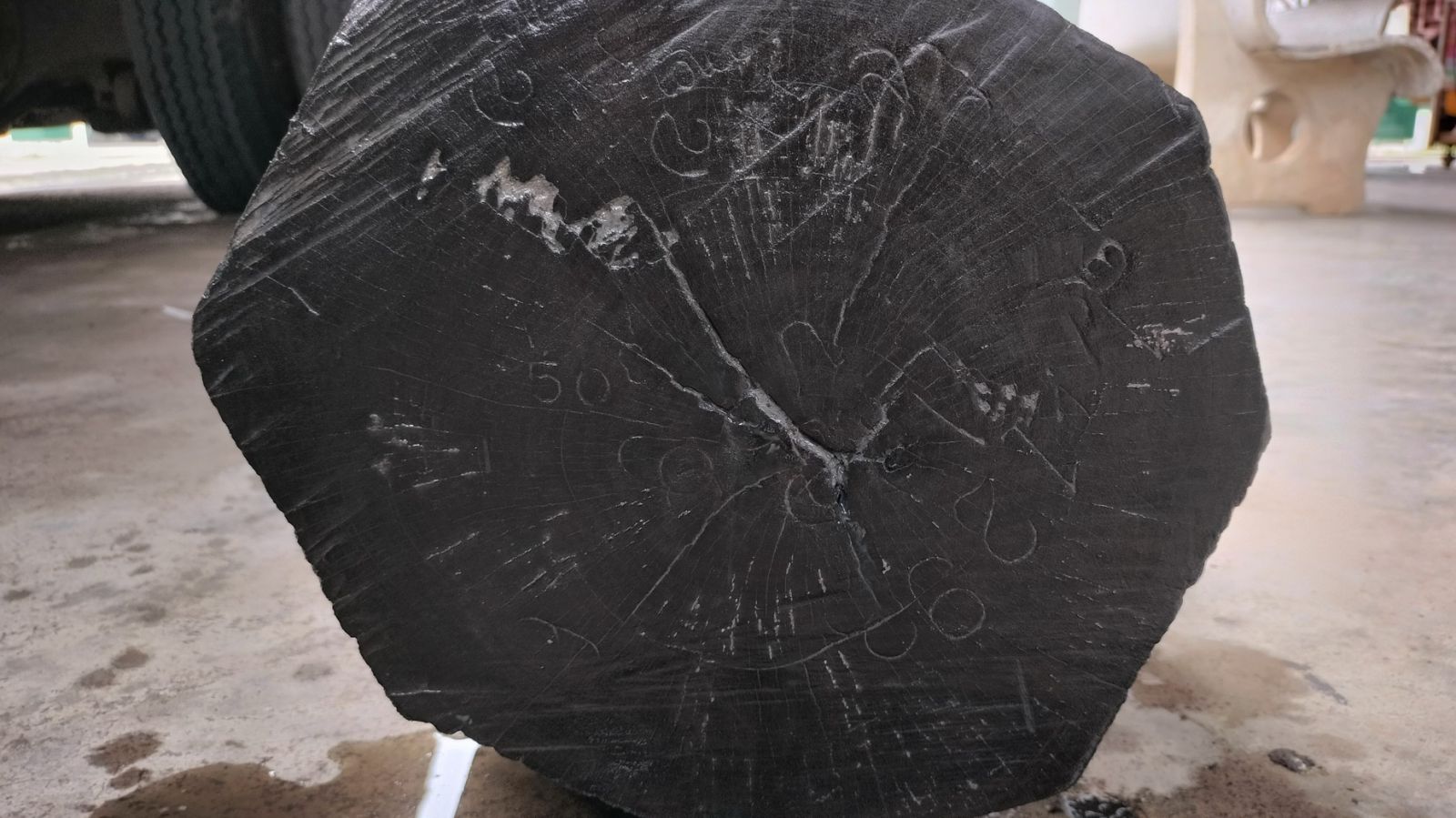 ขณะที่ใต้โคนเสาที่หน้าตัดของไม้ท่อนนี้ ยังมีการตีตราเป็นตัวเลขไว้ด้วย ซึ่งไม่ทราบว่าเป็นเลขทะเบียนอะไร หรือเป็นเลขจากทางหน่วยงานที่เกี่ยวข้องในการอนุญาตให้ตัดทำไม้หรือไม่ แต่ชาวบ้านได้มีการถ่ายภาพส่งต่อกันภายในพื้นที่ ซึ่งเห็นเป็นเลข 50 และ 1293 และเชื่อว่าเสาไม้แบบนี้ไม่น่าจะมีหลงเหลืออยู่ในพื้นที่อีกแล้ว แต่ทางครอบครัวนั้นไม่ได้รู้สึกเสียดายอะไร เพราะต้องการที่จะนำไปทำบุญ นายณรงค์ กล่าว