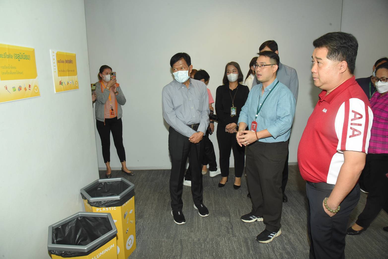 เยี่ยมชมต้นแบบการคัดแยกขยะ บริษัท เอไอเอ จำกัด สำนักงานใหญ่ ถนนเดโช ซึ่งบริษัทมีนโยบายพัฒนาระบบการจัดการขยะมูลฝอยและของเสียอันตรายภายในสำนักงาน เพื่อเป็นต้นแบบการจัดการขยะในพื้นที่เมือง สร้างค่านิยม Zero Waste และความตระหนักของพนักงานให้เห็นความสำคัญของการลดและคัดแยกขยะที่ต้นทาง โดยเขตฯ ได้สนับสนุนเจ้าหน้าที่ในส่วนการให้ความรู้และแนวทางการคัดแยกขยะ รวมถึงสาธิตการทำน้ำหมักชีวภาพให้กับพนักงานอีกด้วย ซึ่งปริมาณขยะภายในสำนักงานลดลงจากเดิม ขยะทั่วไป 1,204 กิโลกรัมต่อเดือน ลดลงเหลือ 1,000 กิโลกรัมต่อเดือน ขยะรีไซเคิล 255 กิโลกรัมต่อเดือน ลดลงเหลือ 200 กิโลกรัมต่อเดือน และขยะอินทรีย์ 207 กิโลกรัมต่อเดือน ลดลงเหลือ 200 กิโลกรัมต่อเดือน