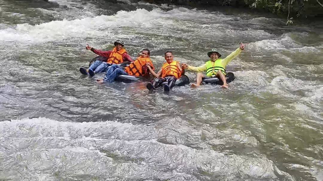 สำหรับสายน้ำแห่งนี้จะเป็นต้นน้ำลำห้วยทา ล้อมรอบไปด้วยต้นไม้นาๆพันธุ์ บนพื้นที่ป่าที่อุดมสมบูรณ์ โดยได้เปิดเส้นทางท่องเที่ยว พร้อมรับนักท่องเที่ยวเป็นกลุ่ม หรือเป็นหมู่คณะ เริ่มตั้งแต่ 5 คนไปจนถึง 50 คน ต่อวัน โดยทริปท่องเที่ยว 2 แบบ คือแบบ 1 วัน จะมีค่าใช้จ่ายคนละ 250 บาท เด็กต่ำกว่า 12 ปี 150 บาท ซึ่งจะมีบริการมัคกุเทศก์ชุมชน ที่ชำนาญเส้นทางเดินป่าตามเส้นทางธรรมชาติ คอยดูแลและแนะนำจุดต่างๆ มีบริการอาหาร น้ำดื่ม โดยจัดเป็นชุดห่อข้าวให้คนละ 1 ชุด และห่วงยางขนาดใหญ่สำหรับเล่นน้ำและล่องแก่ง รวมทั้งเสื้อชูชีพครบทุกคน โดยจะออกเดินทางไปยังจุดล่องแก่ง เวลา 09.00 น. และกลับขึ้นมาเวลา 15.00 น.