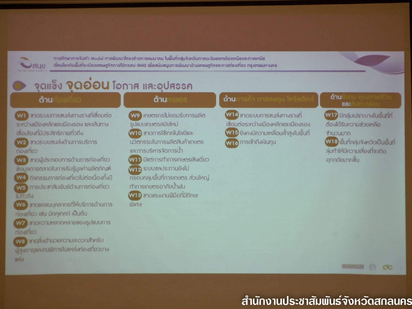 วันที่ 18 กันยายน 2566 ที่ ห้องประชุมภูสกลแกรนด์ โรงแรมสกลแกรนด์พาเลช อ.เมืองสกลนคร จ.สกลนครนายชยุต วงศ์วณิช รอง ผวจ.สกลนคร นางวิไลรัตน์ ศิริโสภณศิลป์ รอง ผอ.สํานักงานนโยบายและแผนการขนส่งและจราจร เปิดตัวโครงการศึกษาการจัดทํา Model การพัฒนาโครงข่าย การคมนาคมในพื้นที่กลุ่มจังหวัดภาคตะวันออกเฉียงเหนือและภาคเหนือ เชื่อมโยงกับพื้นที่ระเบียงเศรษฐกิจภายใต้กรอบ GMS เพื่อสนับสนุนการพัฒนาด้านเศรษฐกิจและ การท่องเที่ยว โดยภายในงานมีการแนะนําโครงการและรับฟังความคิดเห็น จากหน่วยงานภาครัฐ เอกชน และประชาชนที่เกี่ยวข้อง ซึ่งมีผู้แทนหน่วยงานและผู้แทนภาคเอกชนในพื้นที่กลุ่มจังหวัดภาคตะวันออกเฉียงเหนือ ตอนบน 2 ได้แก่ จังหวัดนครพนม จังหวัดมุกดาหาร จังหวัดสกลนคร